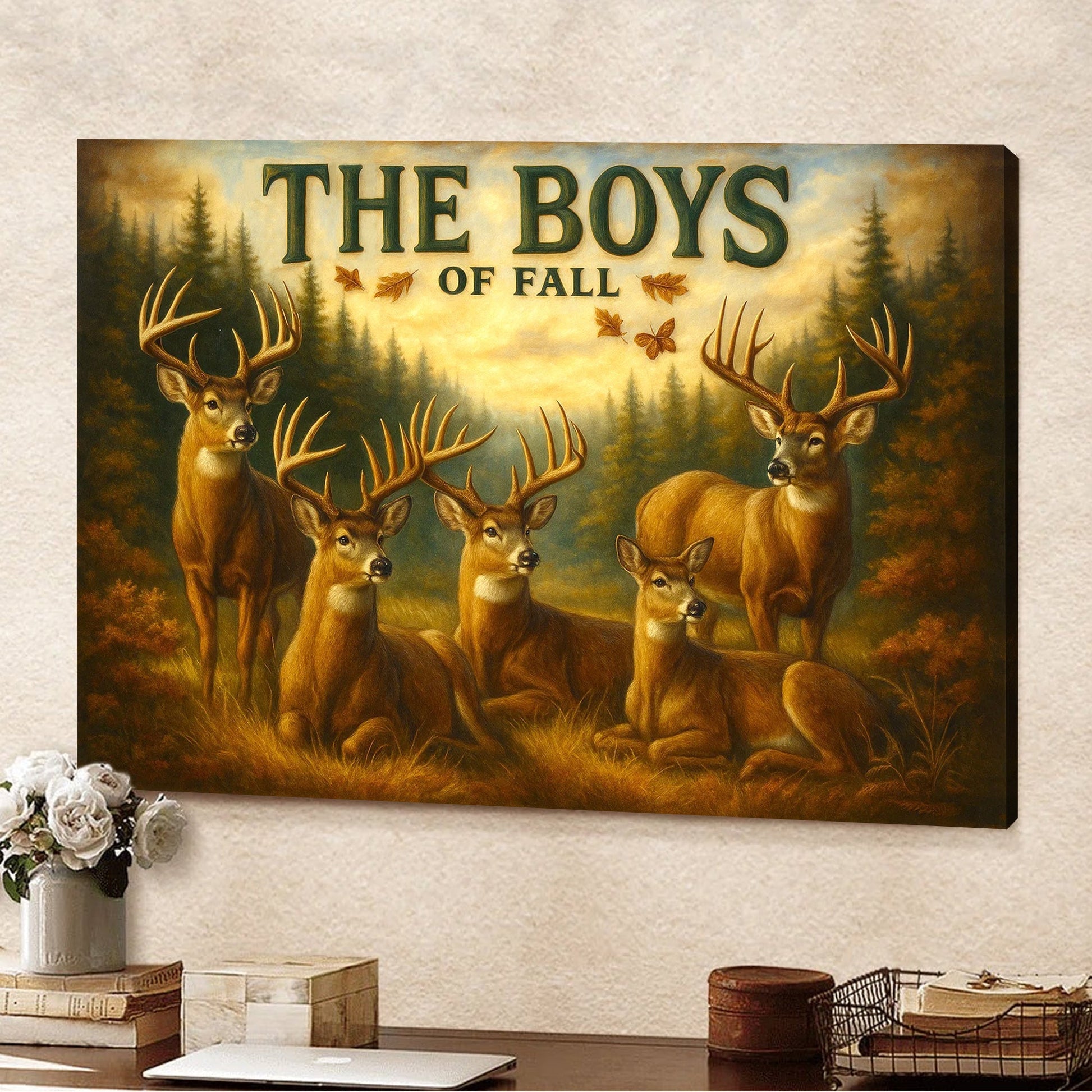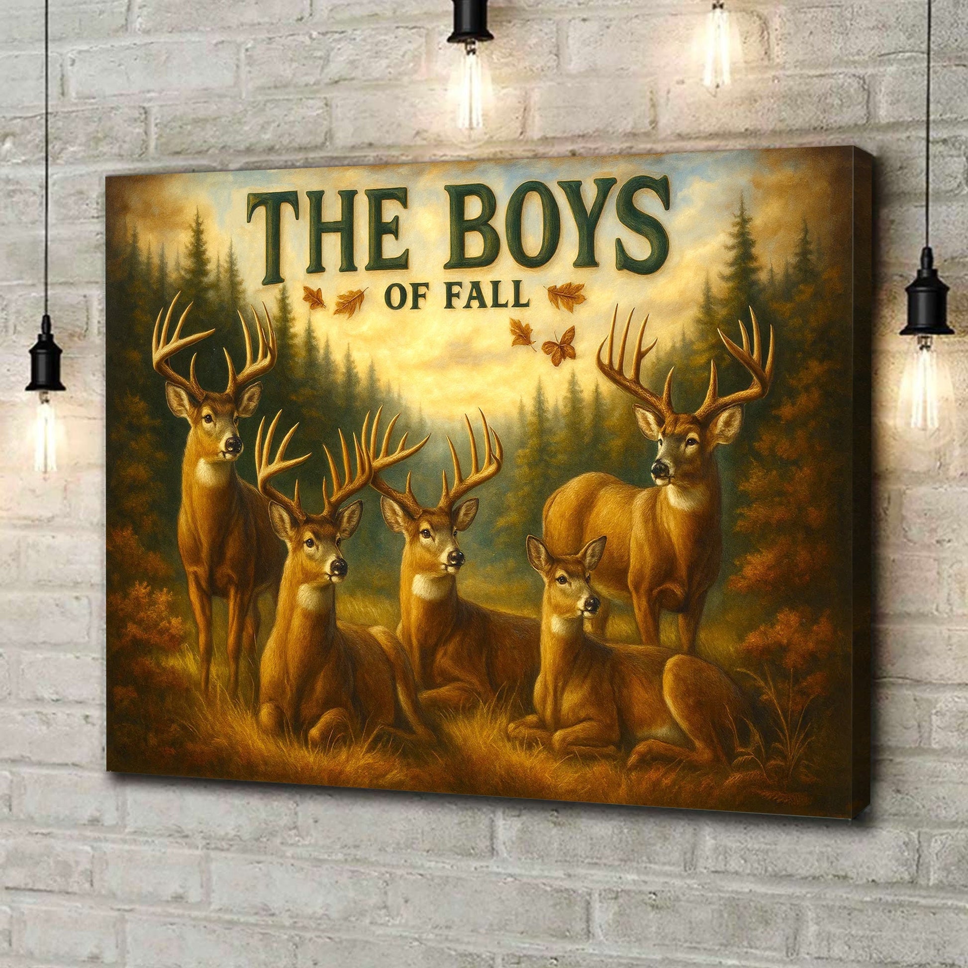 The Boys of Fall Deer Canvas Wall Art – Rustic Autumn Wildlife Scene – Lodge and Cabin Decor