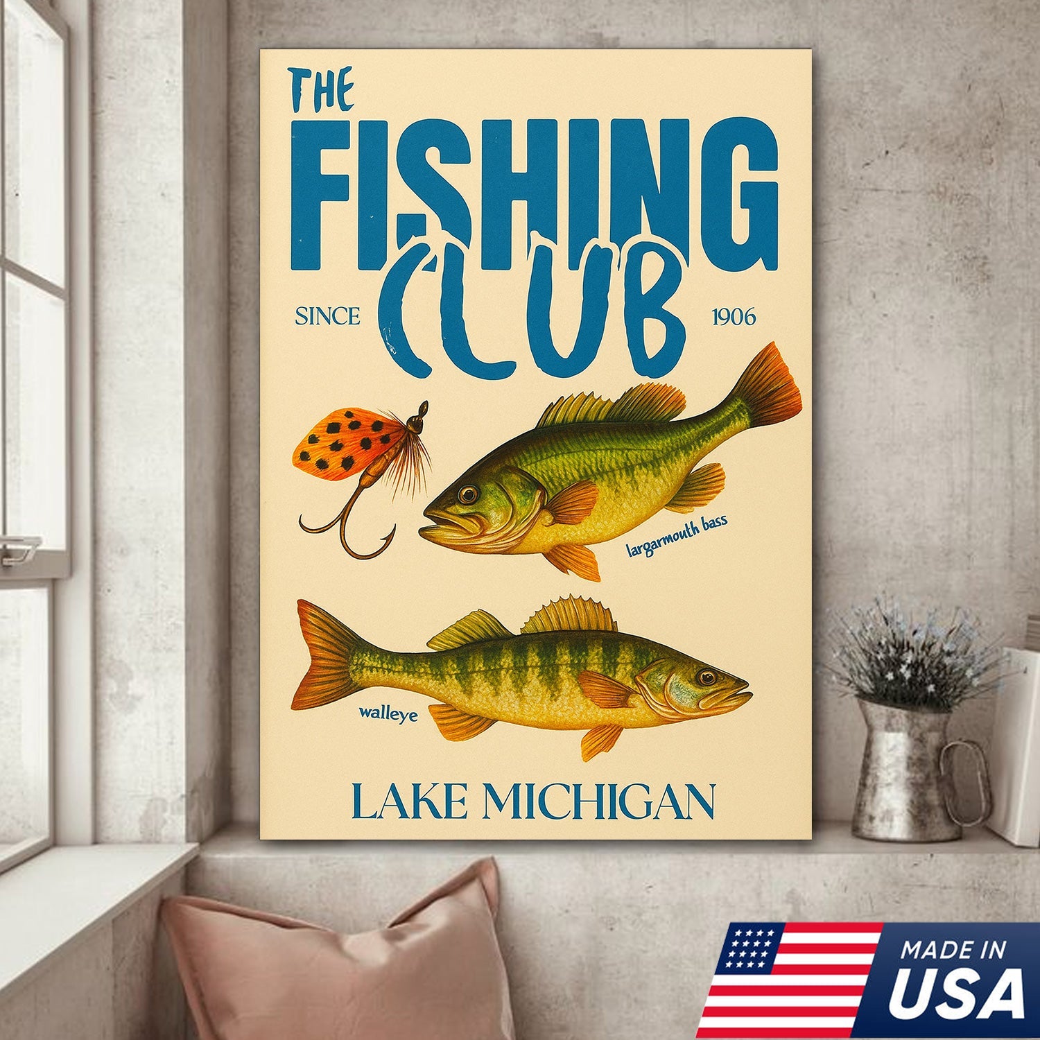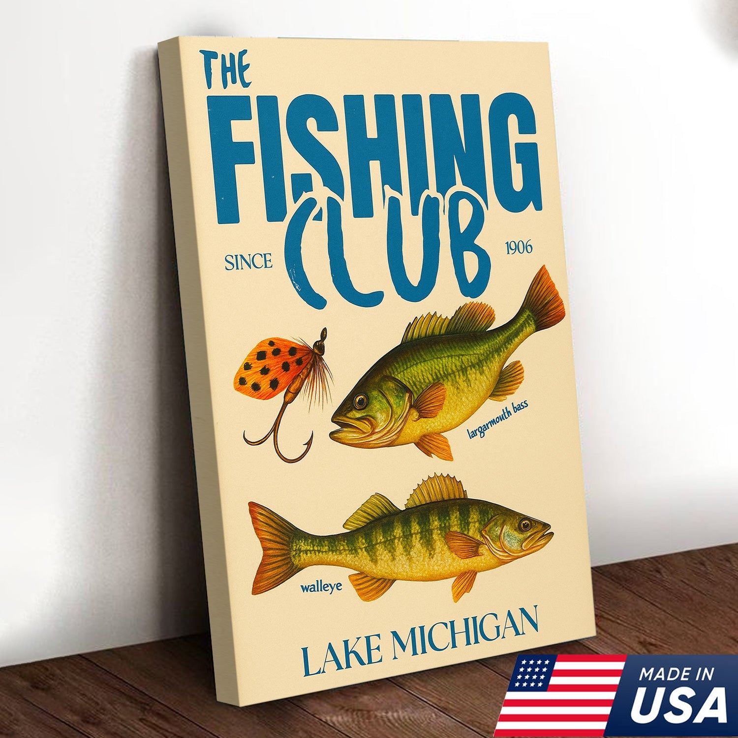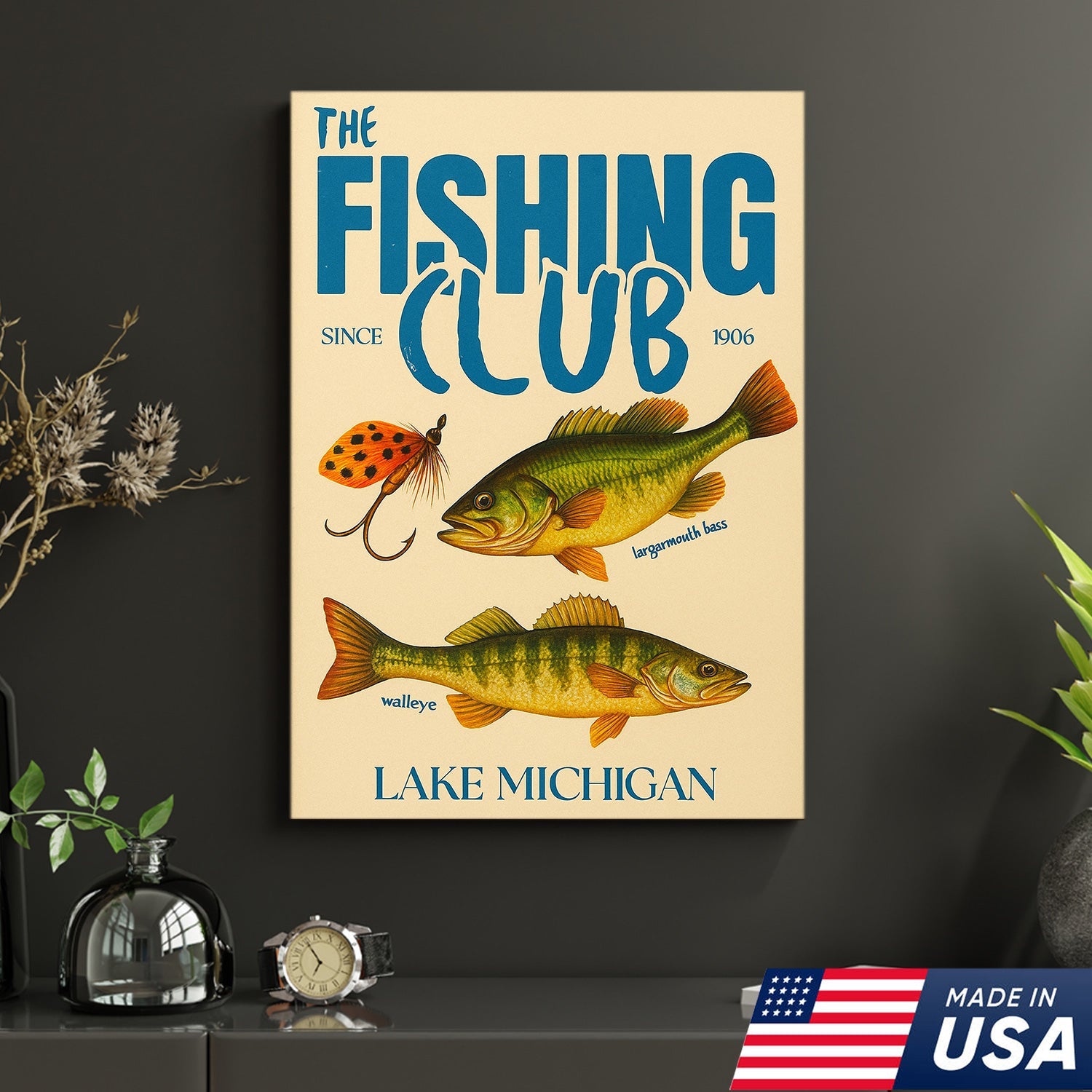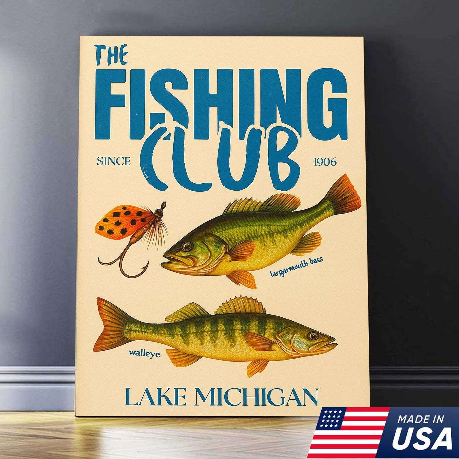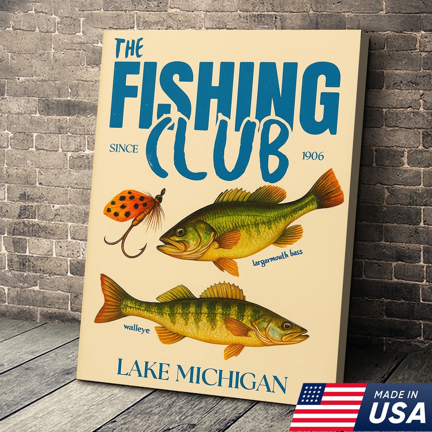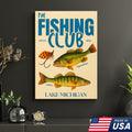 The Fishing Club Retro Wall Art – Vintage Lake Michigan Sign for Fishermen & Cabin Decor