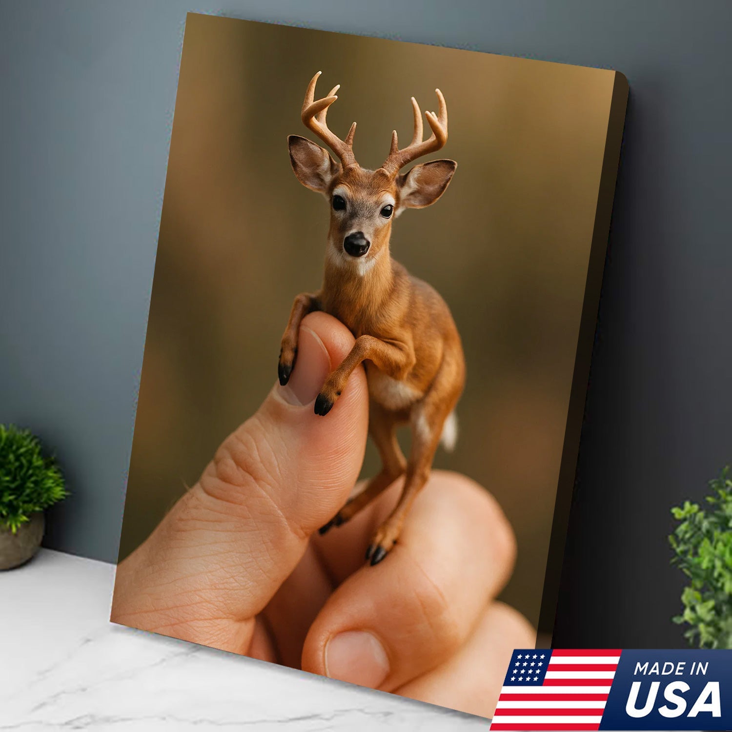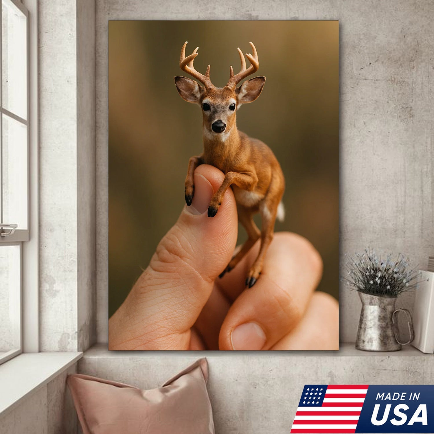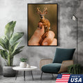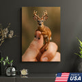 Tiny Deer Canvas Wall Art – Unique Whimsical Wildlife Print – Rustic Cabin and Lodge Decor