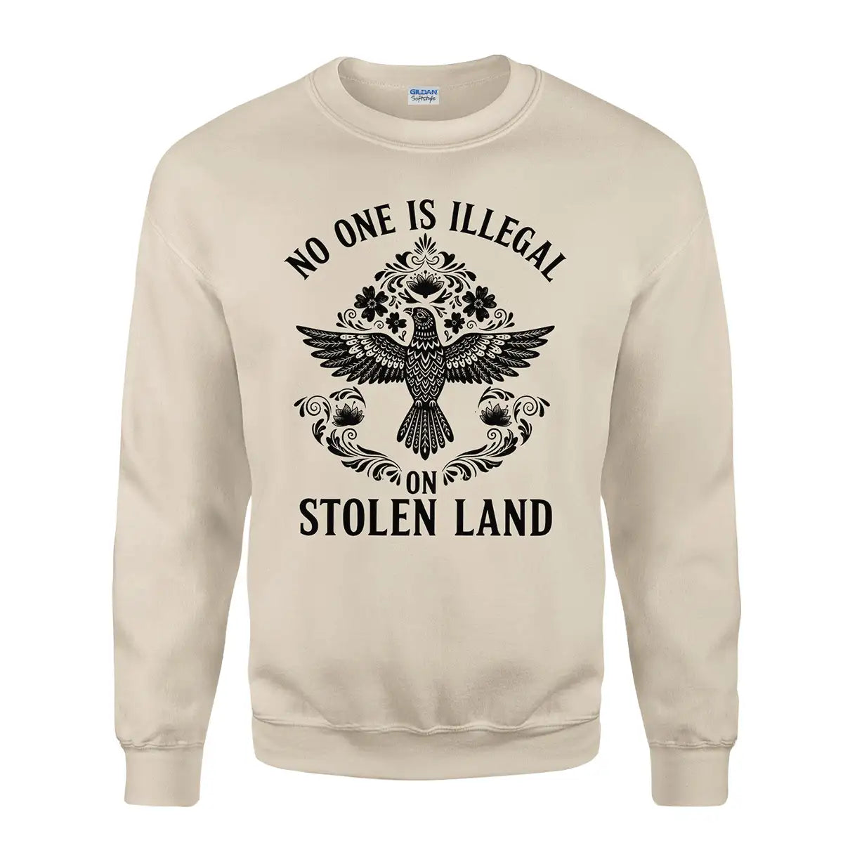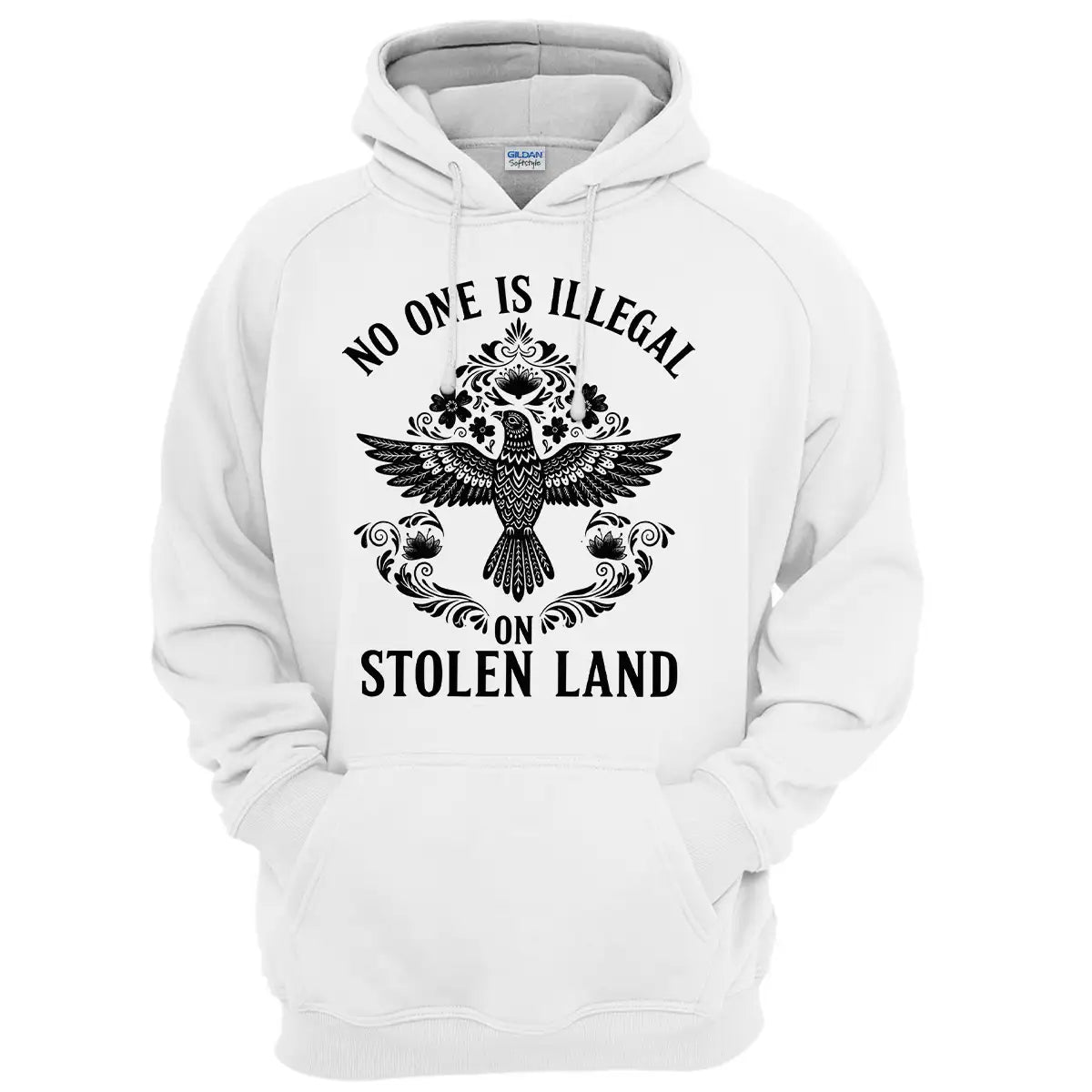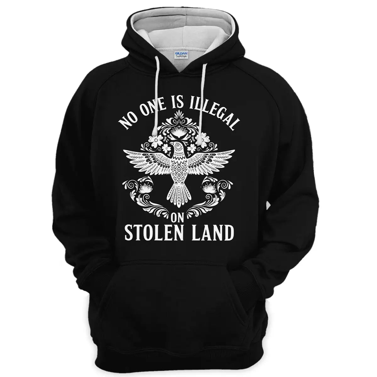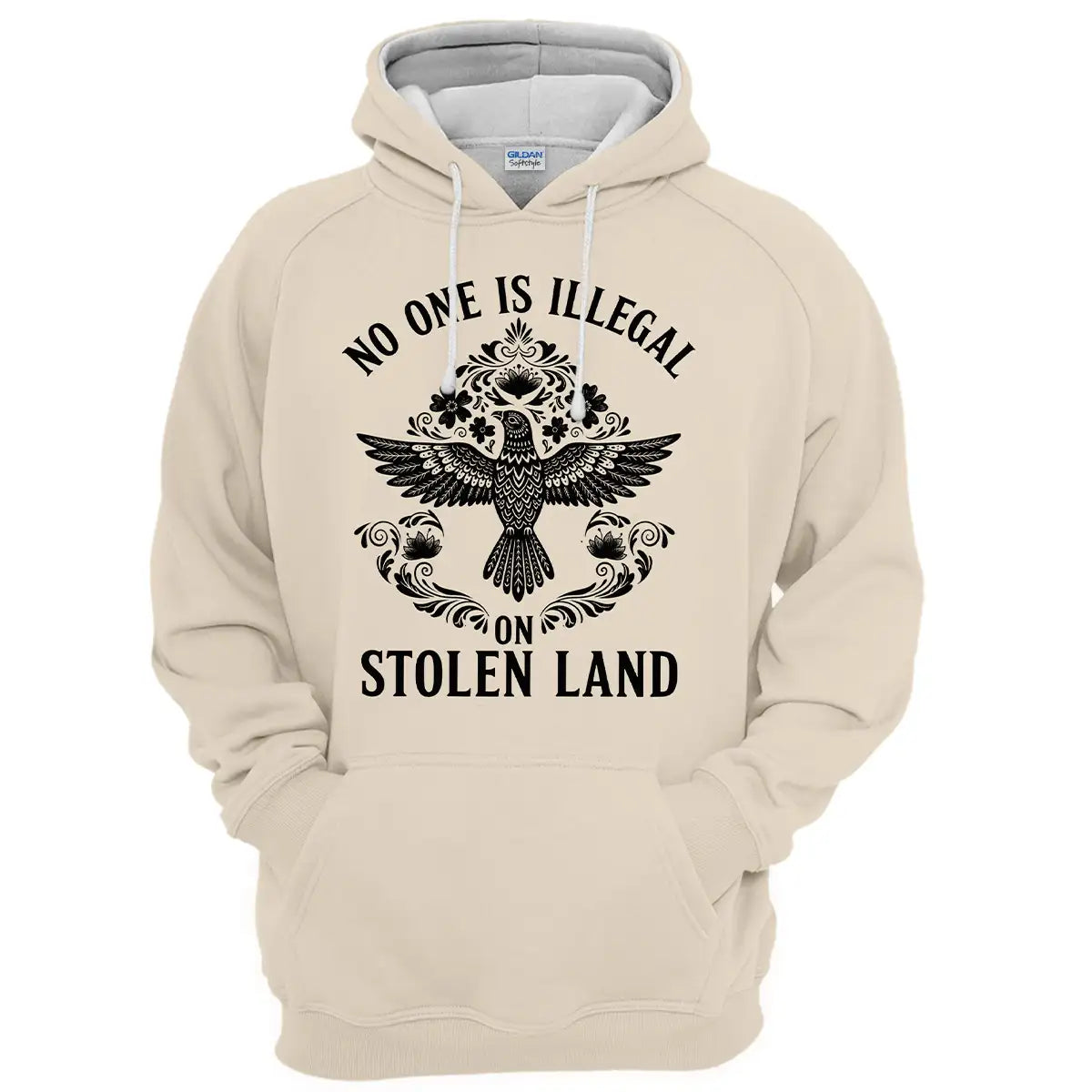 designed by the resilience of Indigenous nations across Turtle Island, this hoodie carries a message that transcends borders: No One Is Illegal on Stolen Land. The centerpiece is a beautifully detailed tribal eagle, a symbol of strength, freedom, and deep spiritual connection in many Native American cultures. Surrounding floral and ornamental motifs add elegance while honoring traditional artistry. Made with premium, soft fabric, this hoodie is perfect for year-round wear and makes a meaningful gift for those who value justice, culture, and truth. Wear it as a statement of solidarity and a tribute to the enduring spirit of Native peoples.