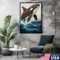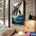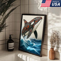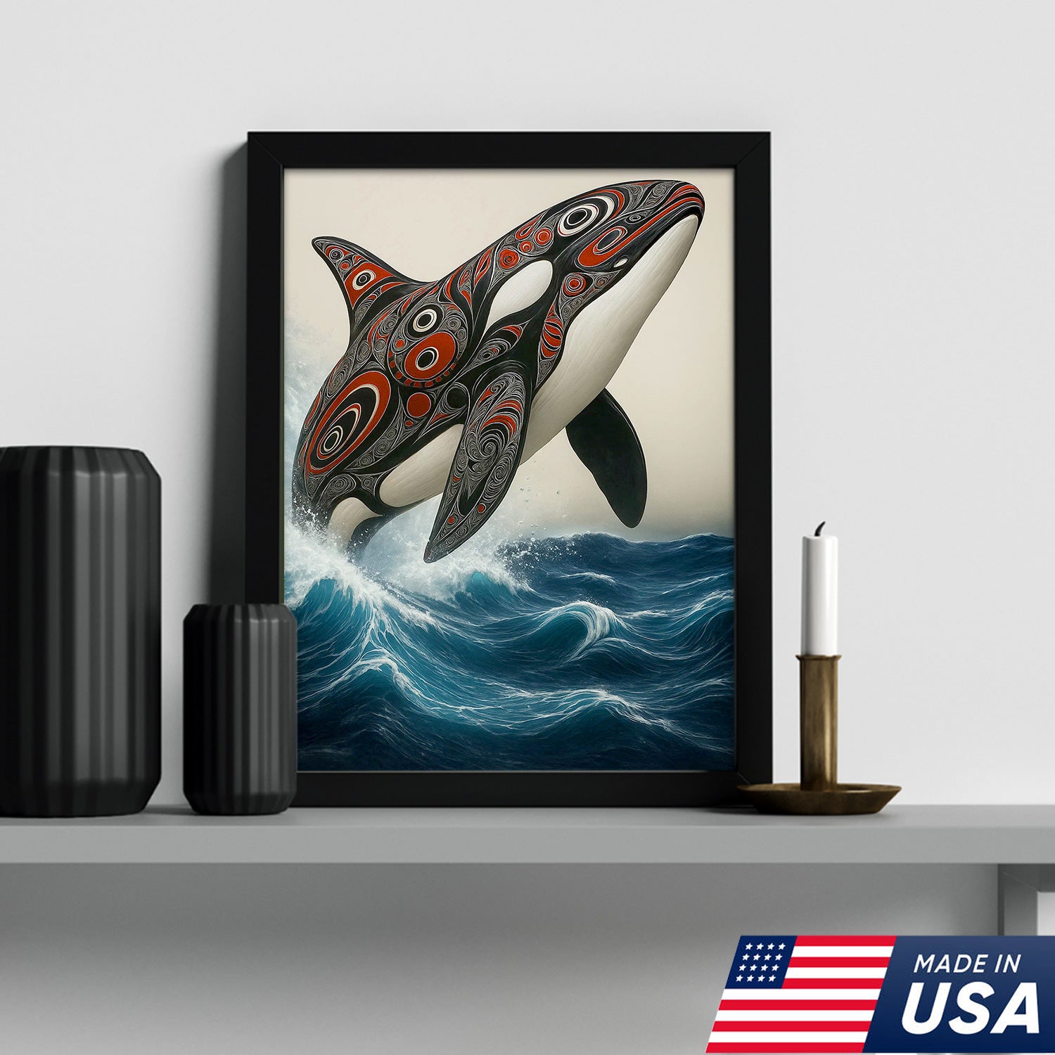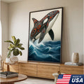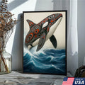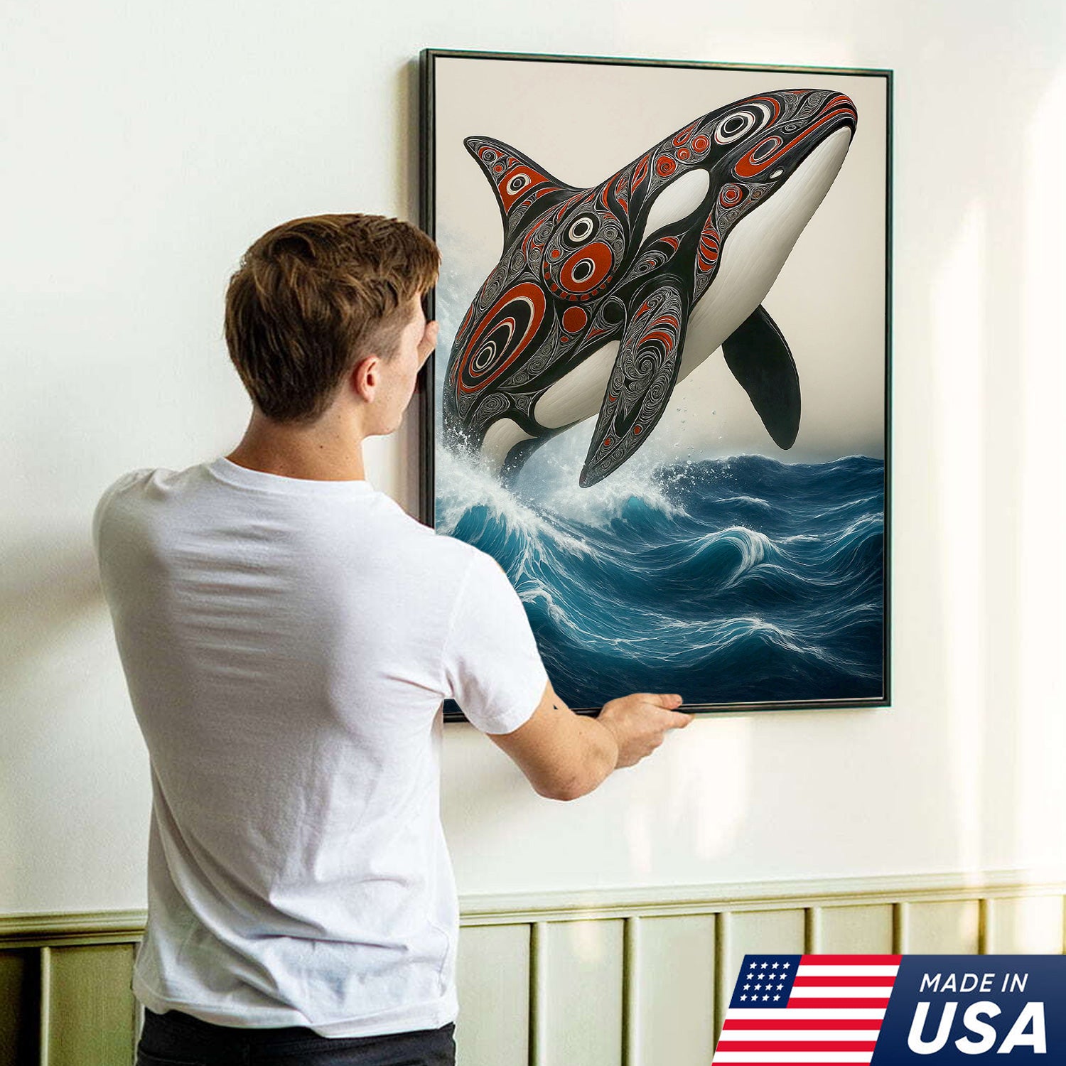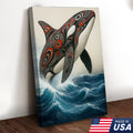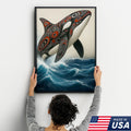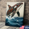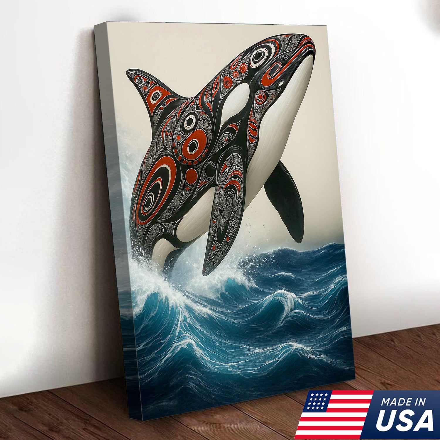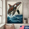 Tribal Orca Canvas Wall Art, Native American Killer Whale Spirit Design, Ocean Power Totem Symbol Coastal Decor