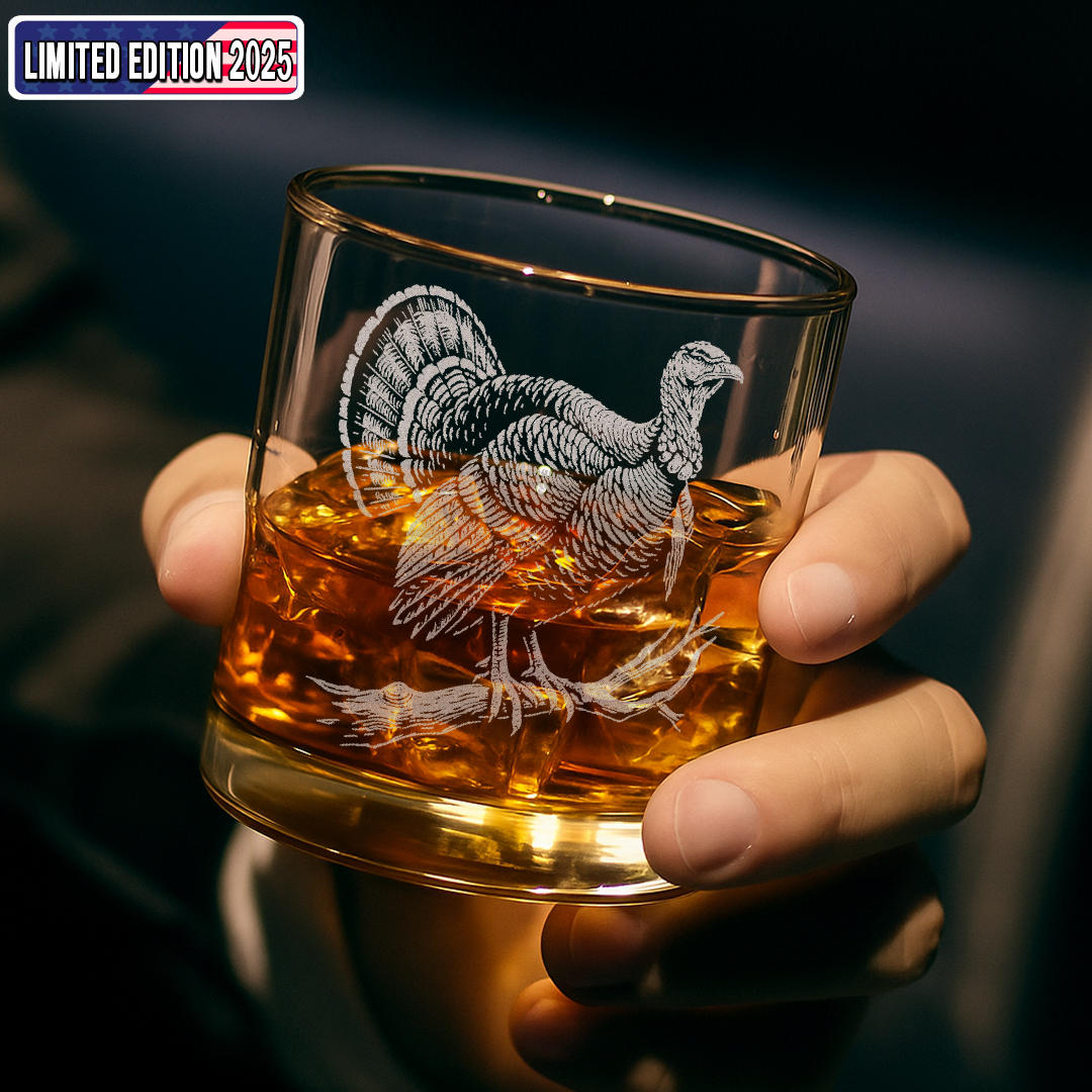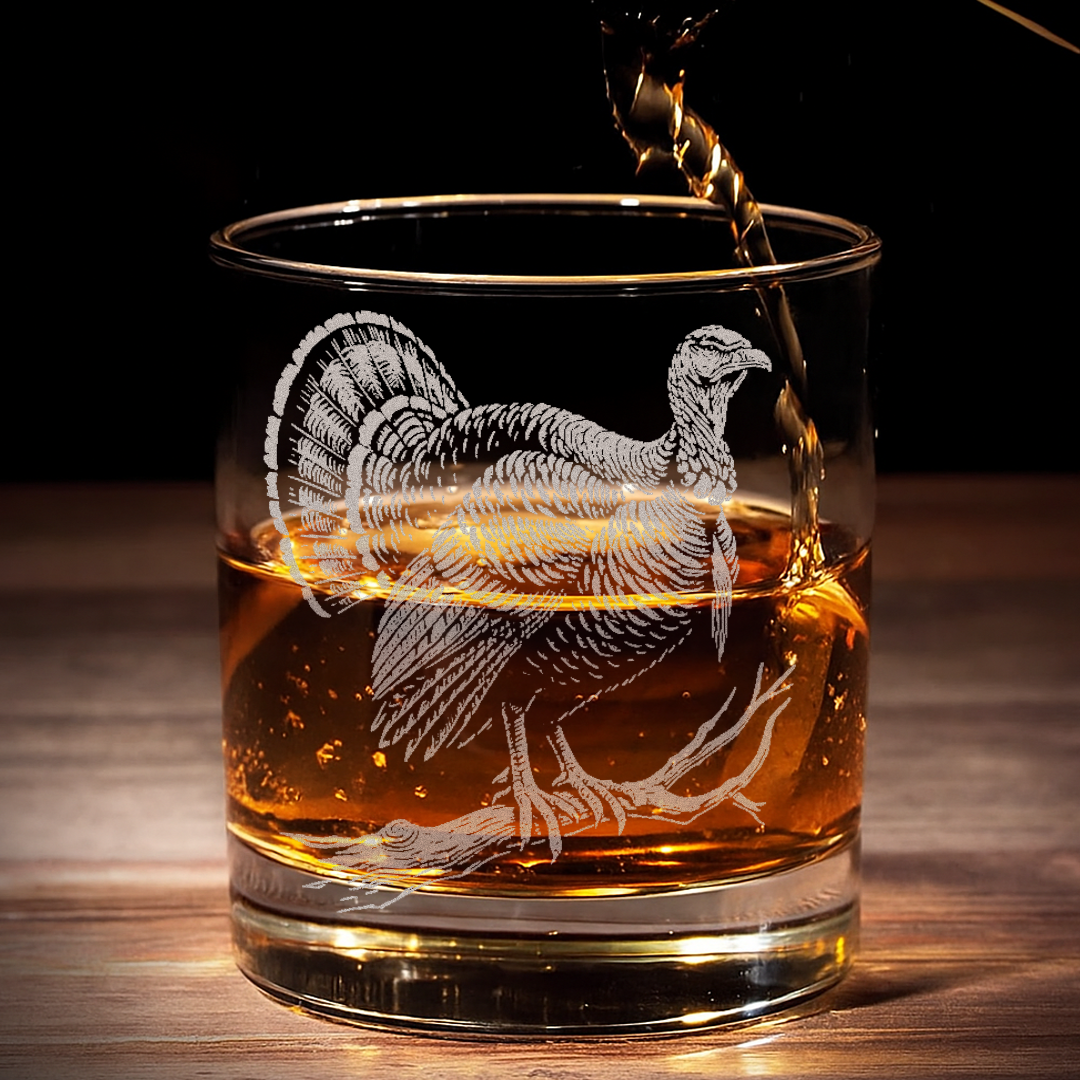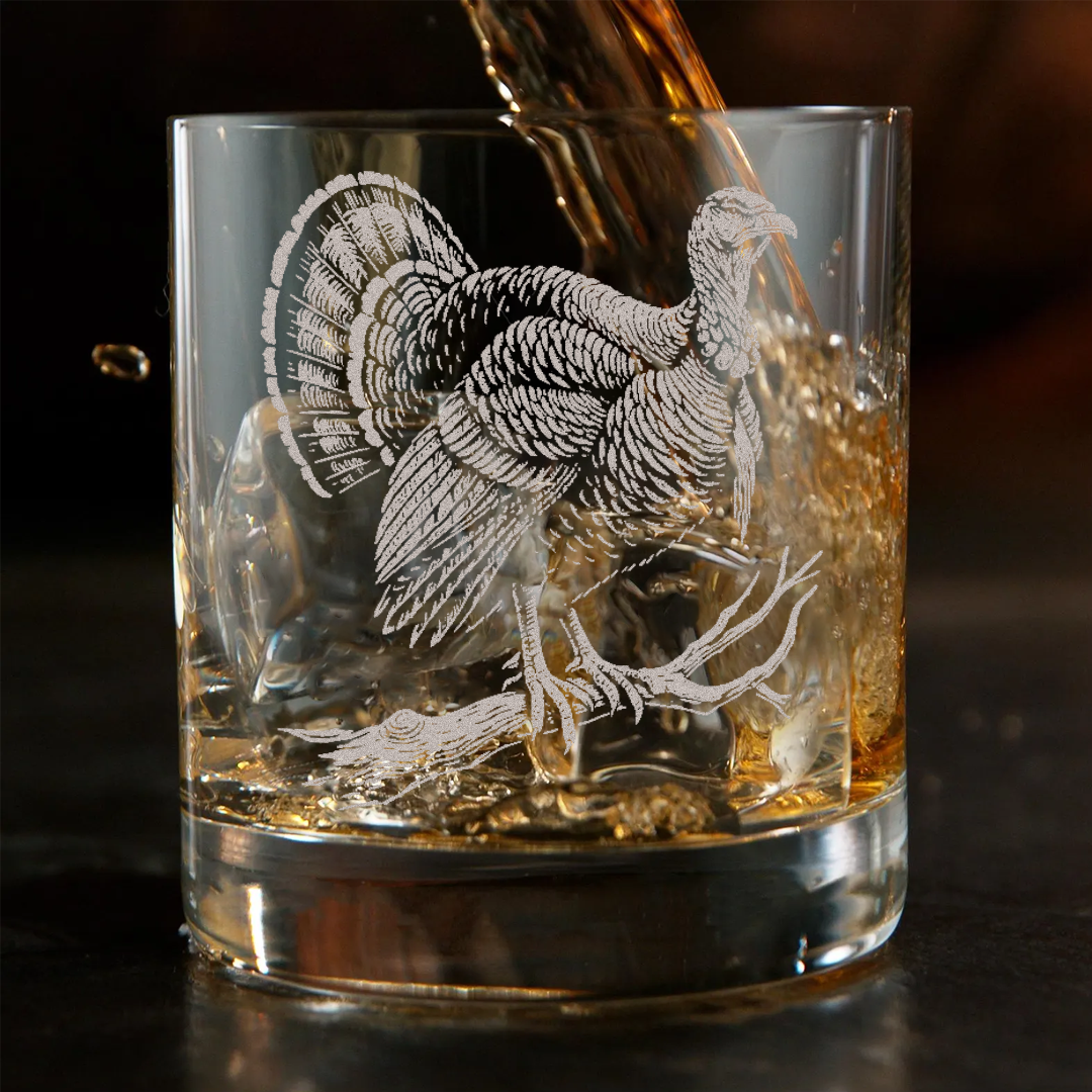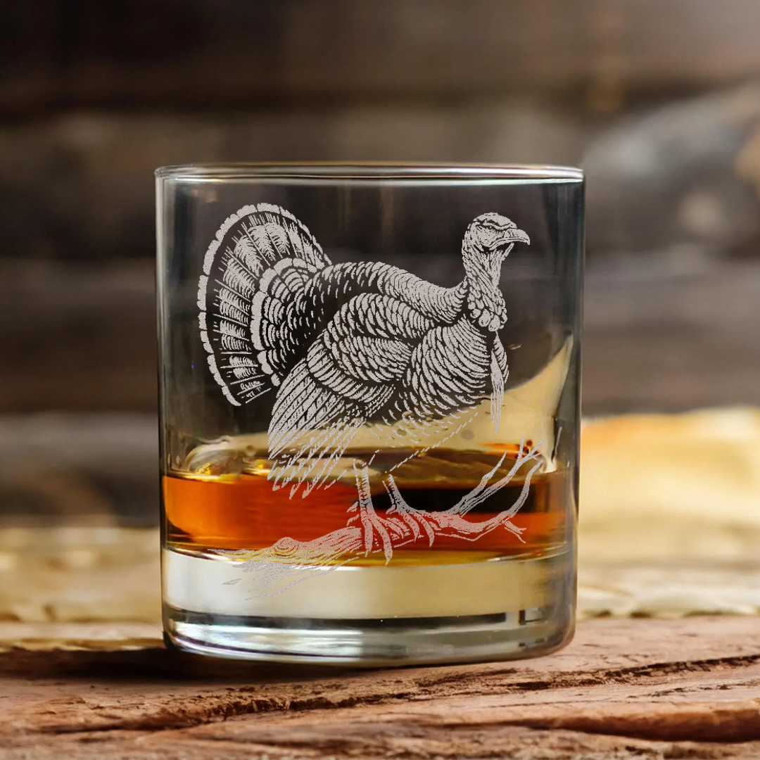 Turkey Whiskey Glass, Custom Engraved Rocks Glass, Rustic Hunting Gift for Outdoorsmen & Drinking Lovers
