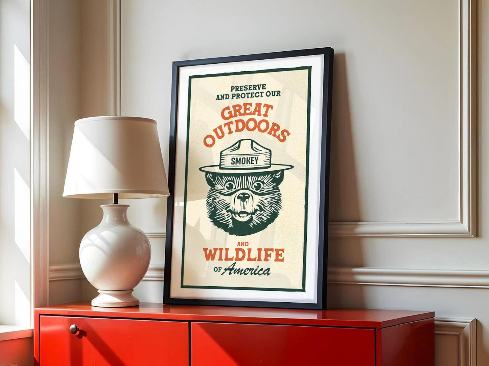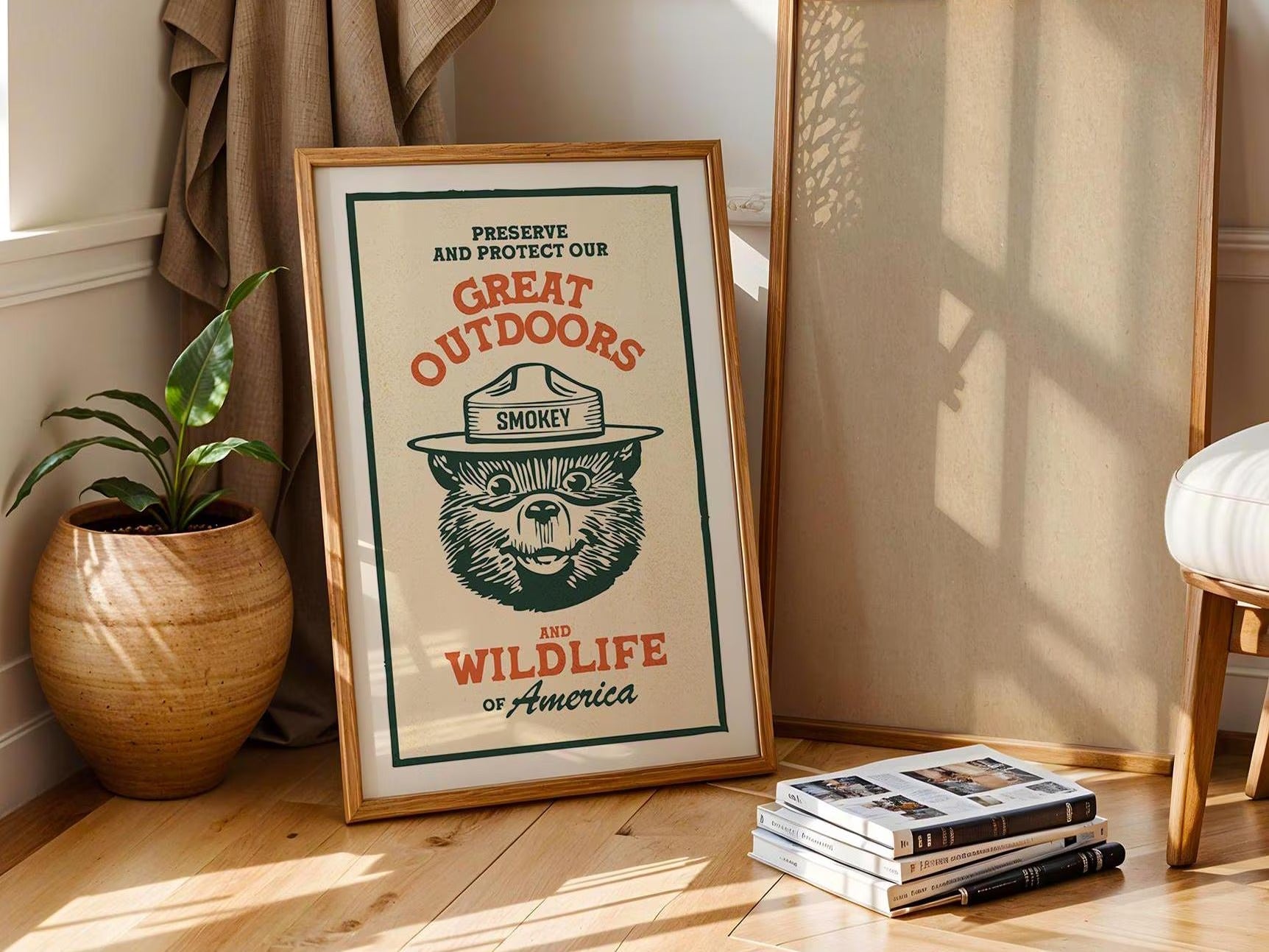 Vintage Smokey Bear Poster Canvas - Great Outdoors & Wildlife Preservation Ideal Gift for Dad, Hunters & Men