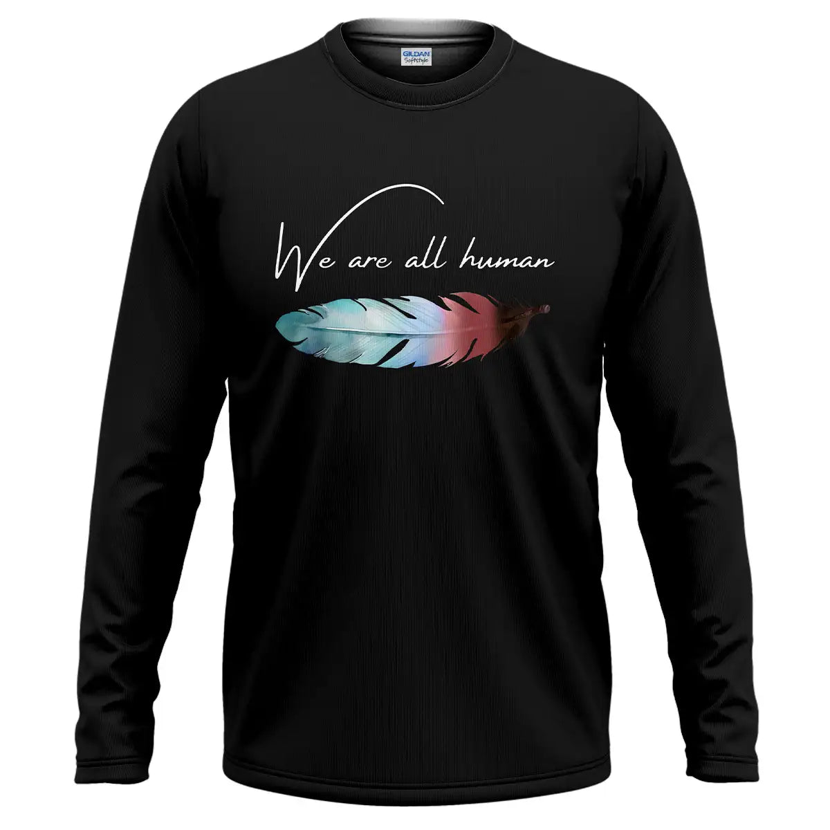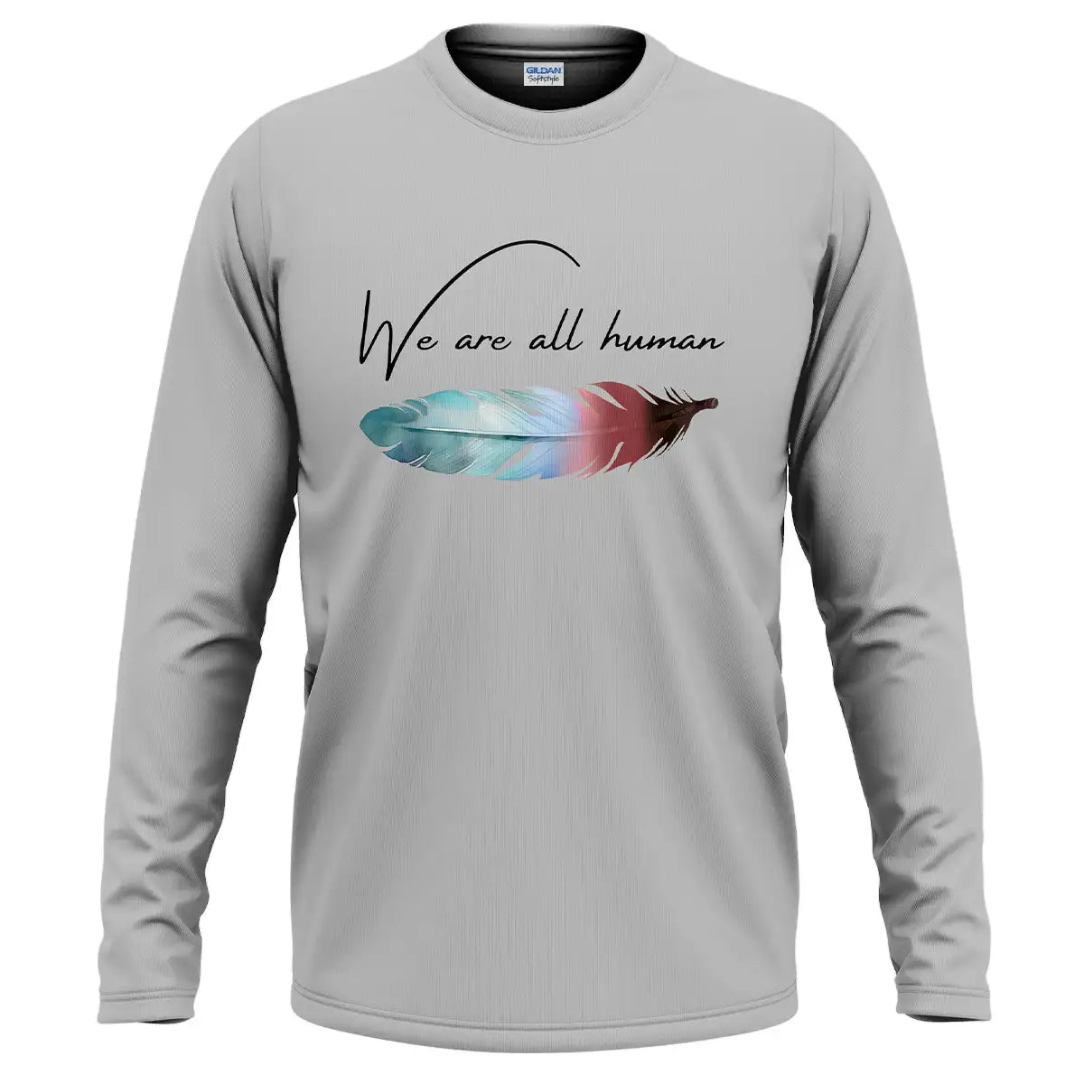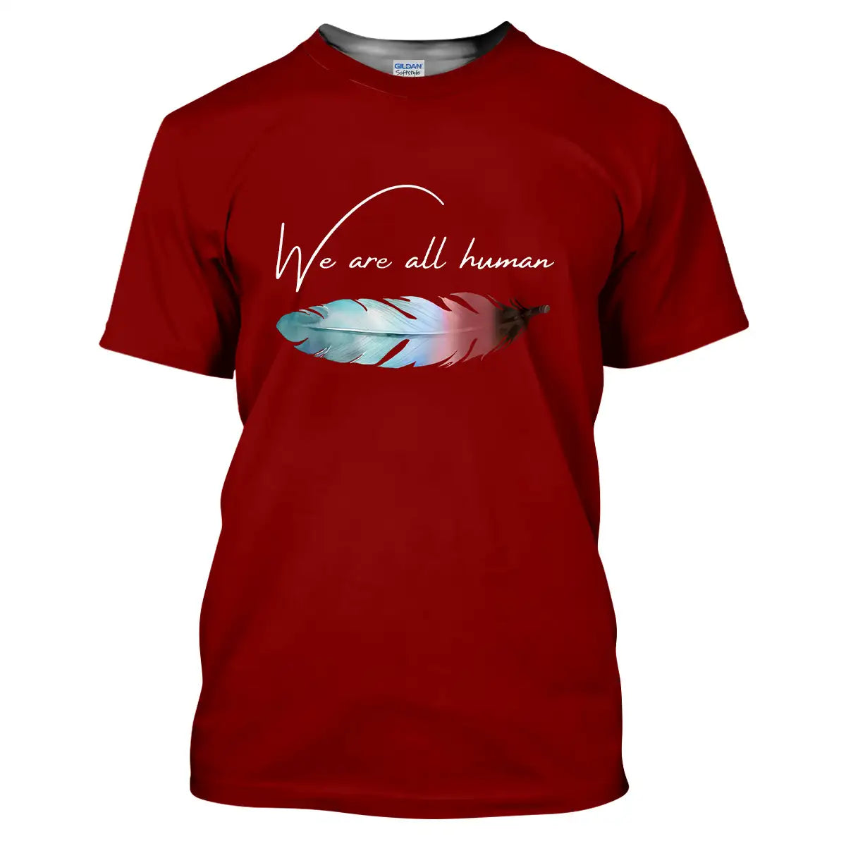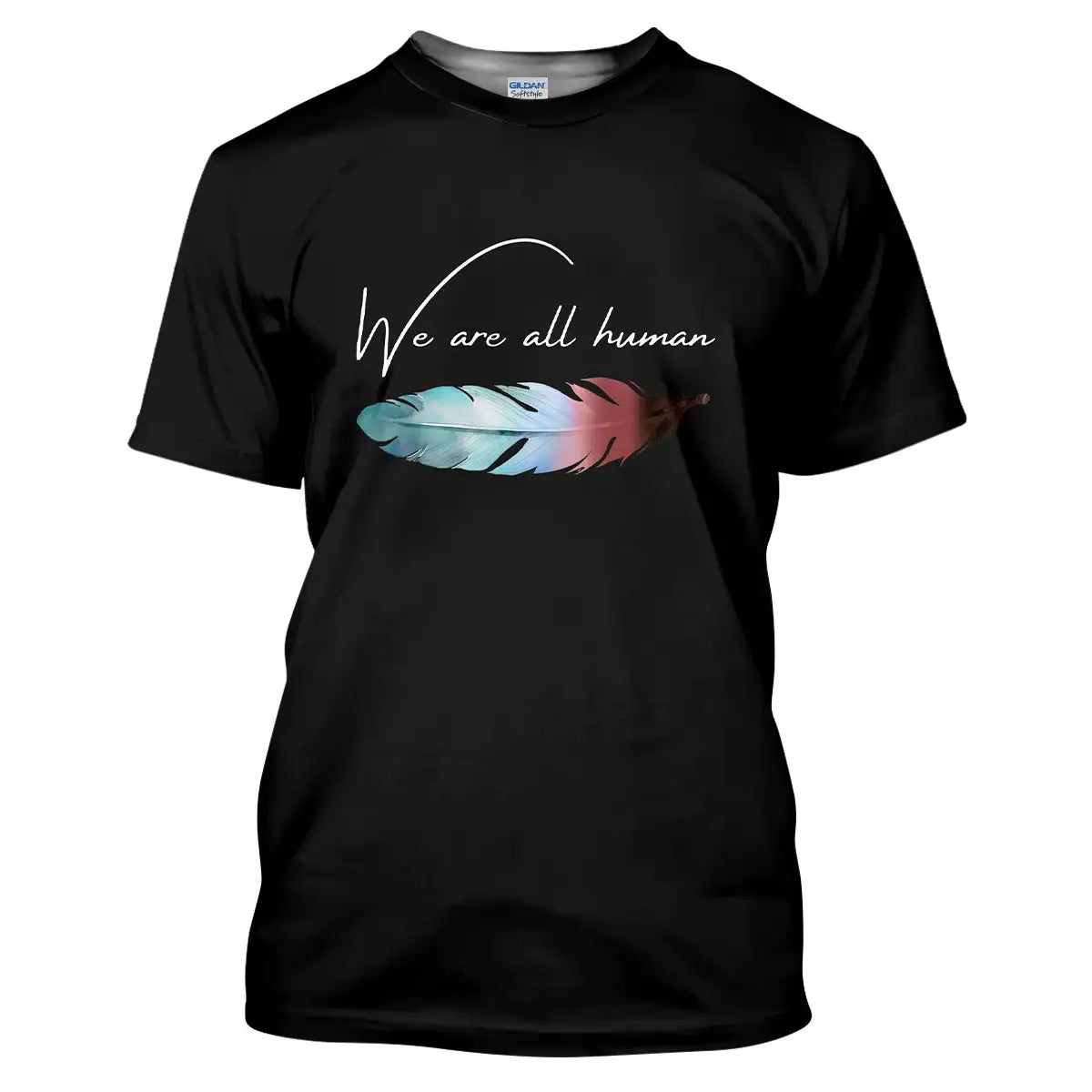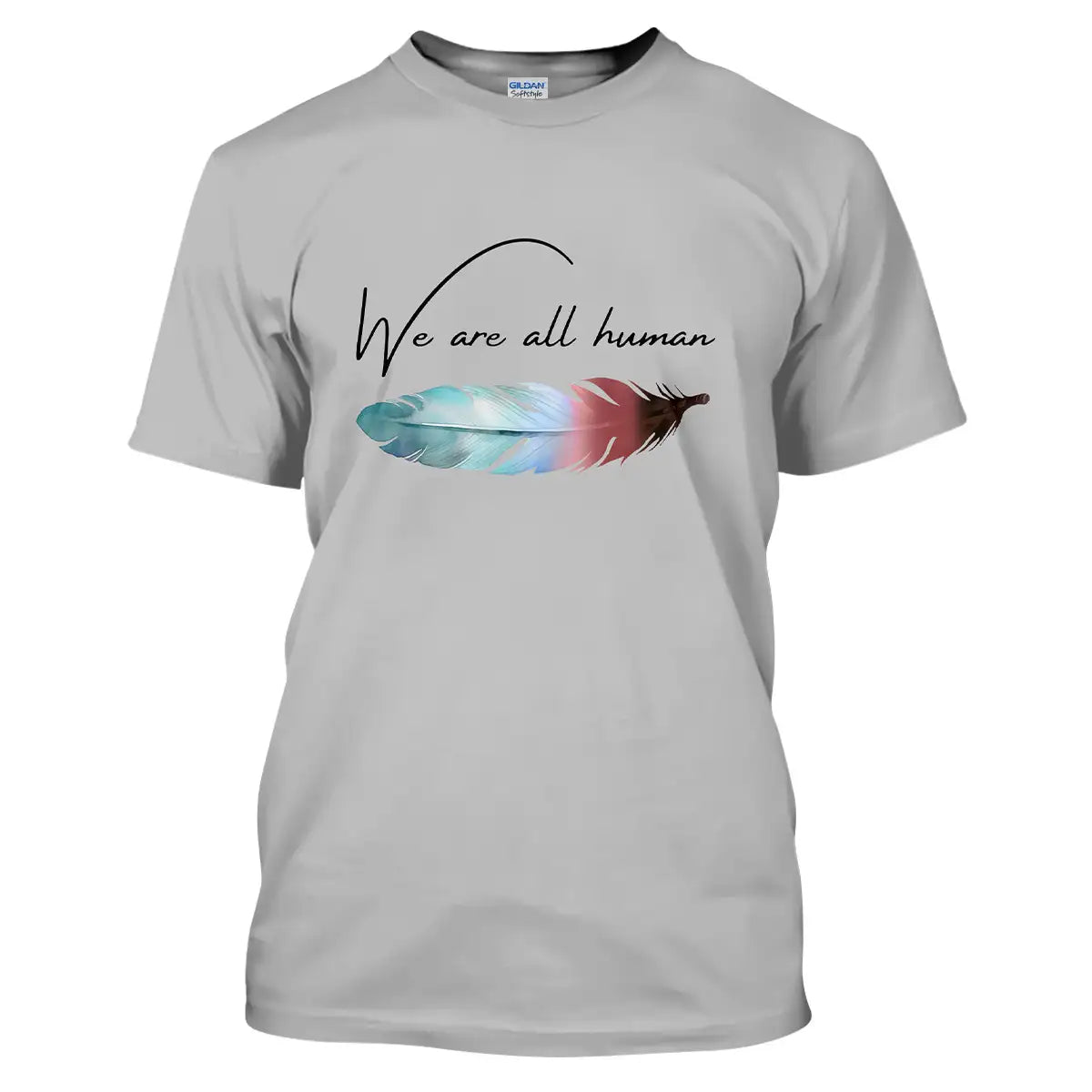 Along the windswept plains of the Lakota homeland, a single feather marks courage, humility, and connection. This design places that symbol at your heart with the words We are all human, a reminder to lead with kindness when days feel heavy. Made for everyday comfort, the fabric is soft and breathable, the print resists fading, and the classic fit sits true to size so you do not keep tugging or doubt. Wear it to work, gatherings, or walks when you need steadiness. Let the feather carry your story of respect, unity, and hope while your tee stays comfortable all day.
