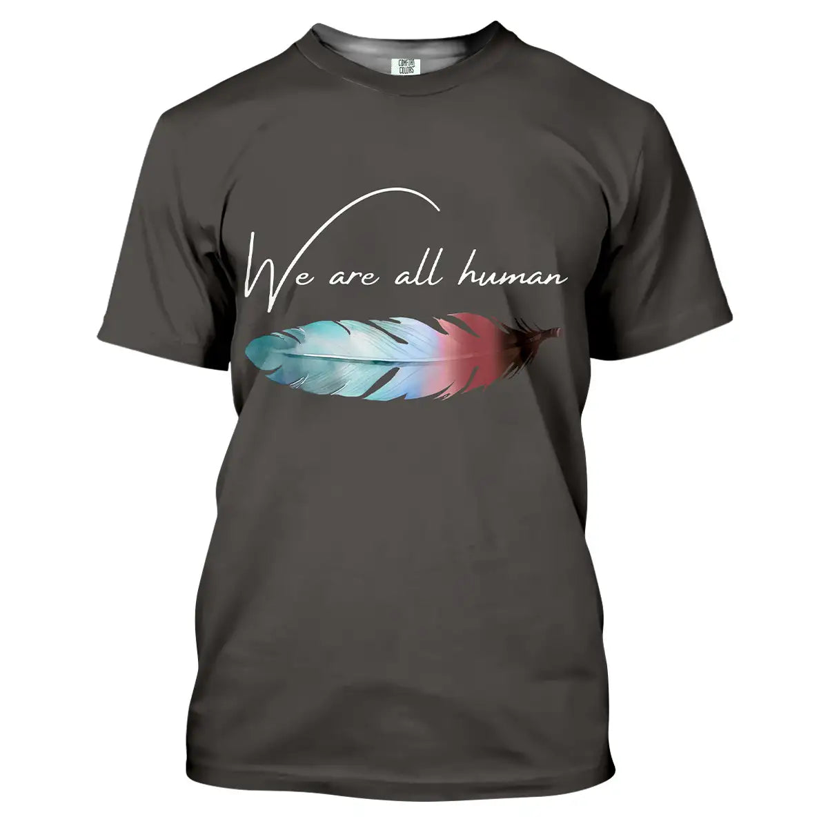 Native America, "We Are All Human", Unisex T Shirt, Feather Graphic
