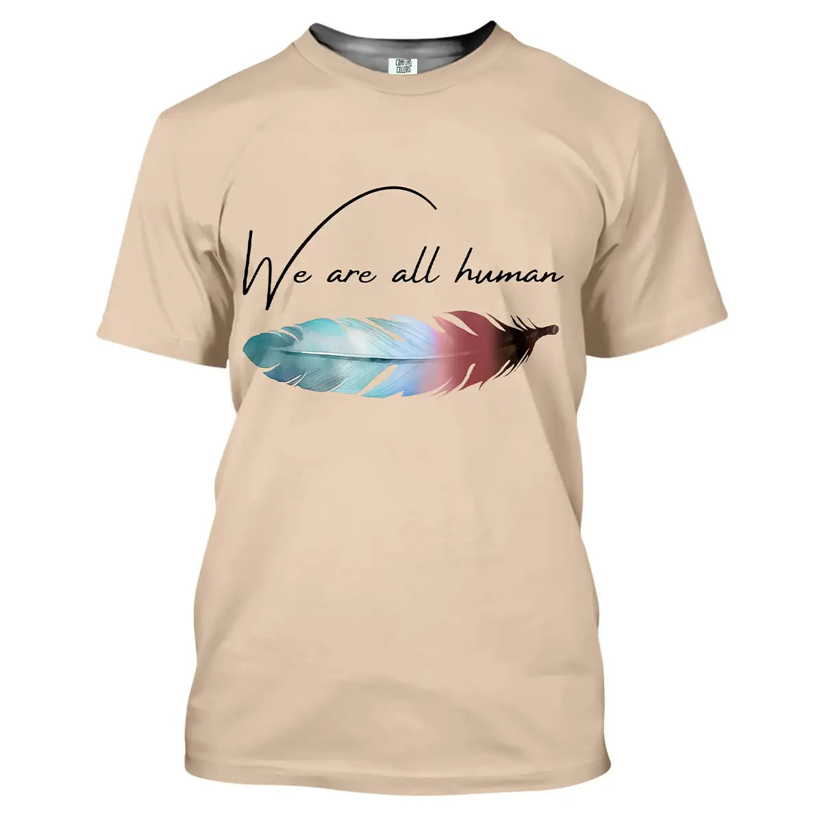 Feather design tee sharing unity, comfort, and everyday gentle courage.
