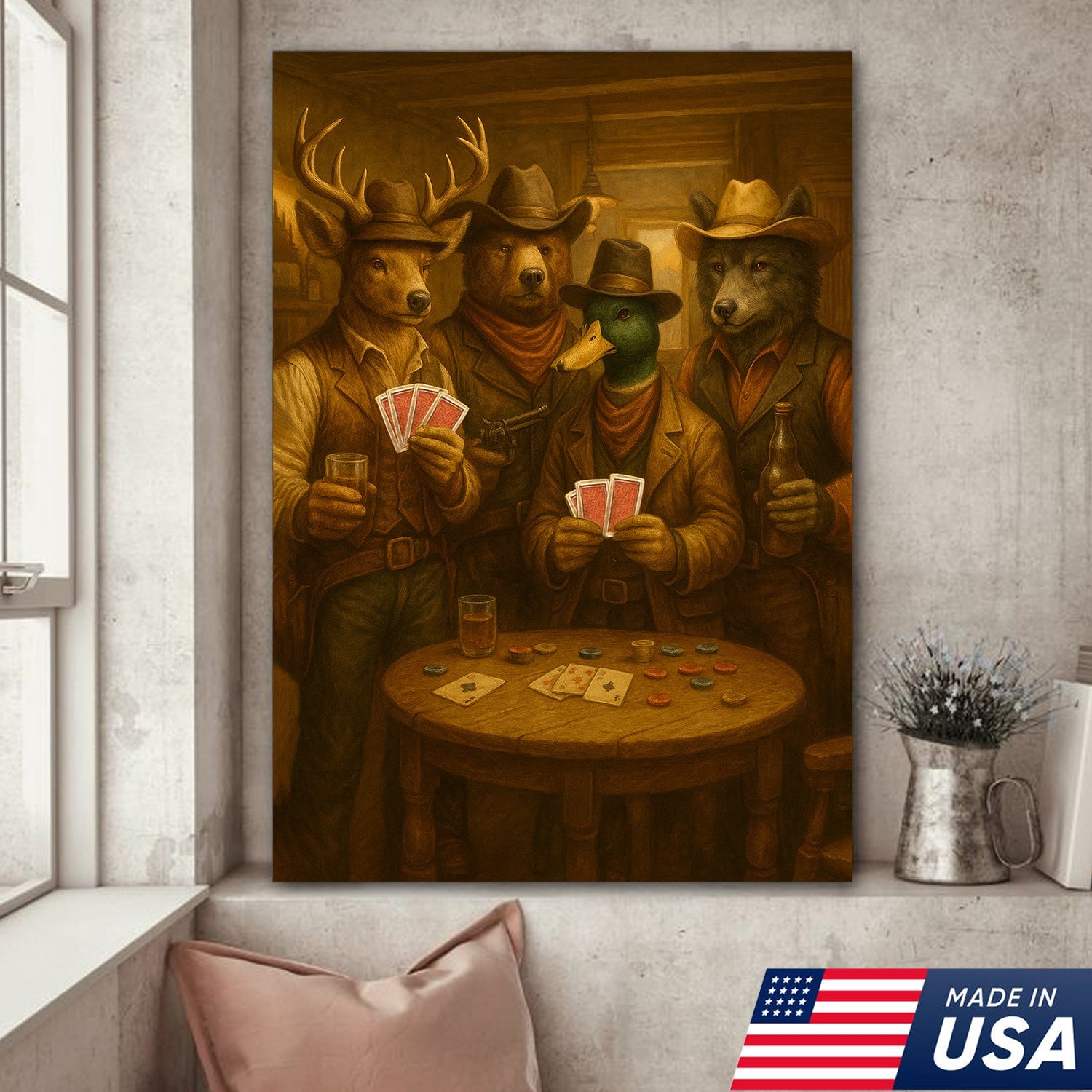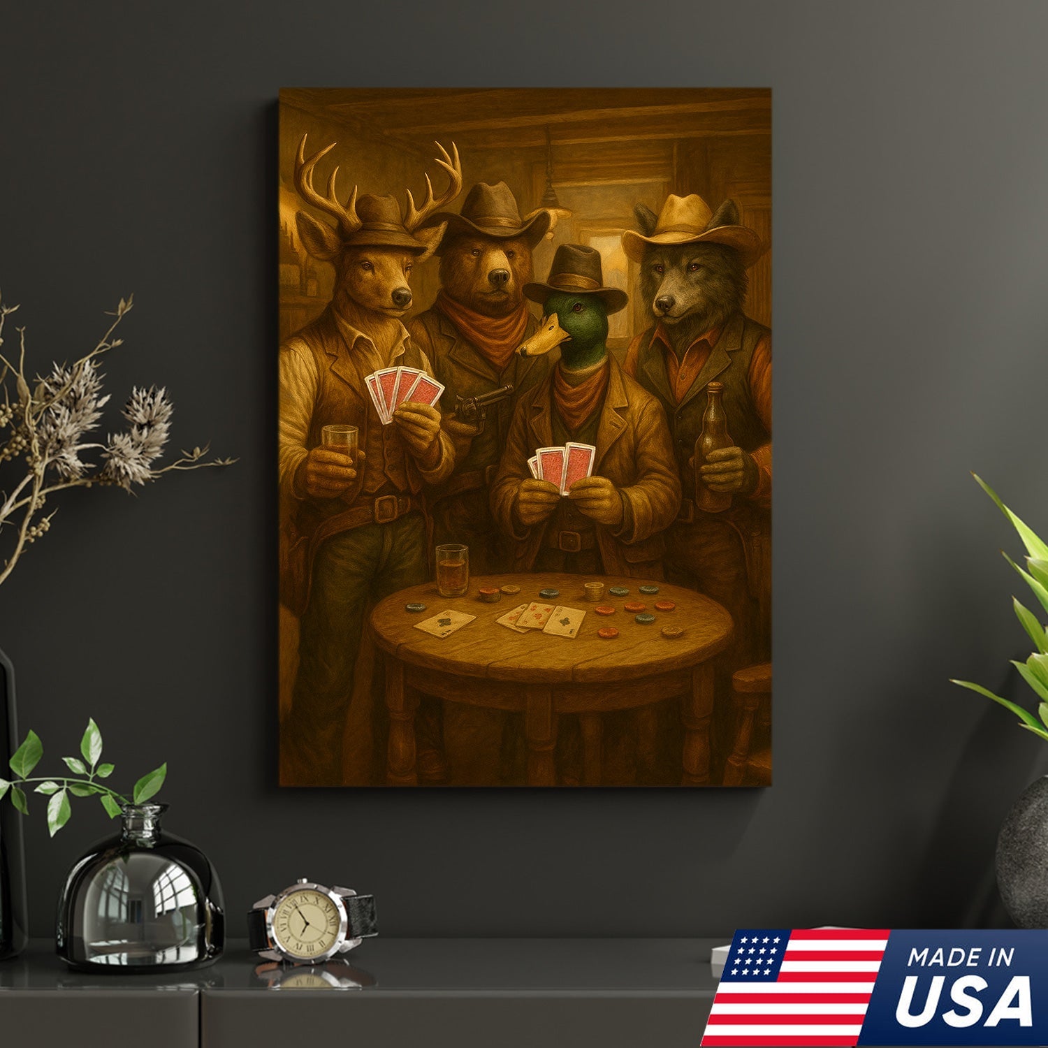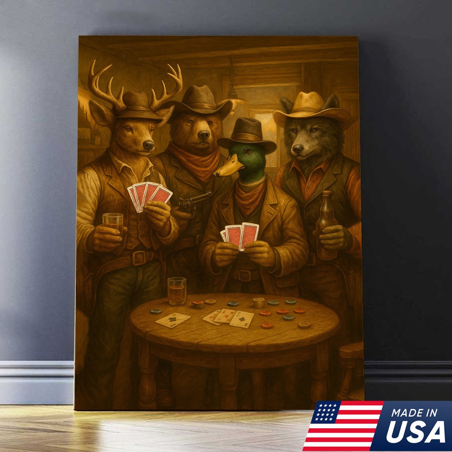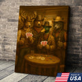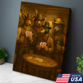 Western Poker Night Animal Canvas Wall Art – Rustic Cowboy Bar Decor for Gamers & Hunters