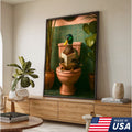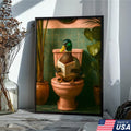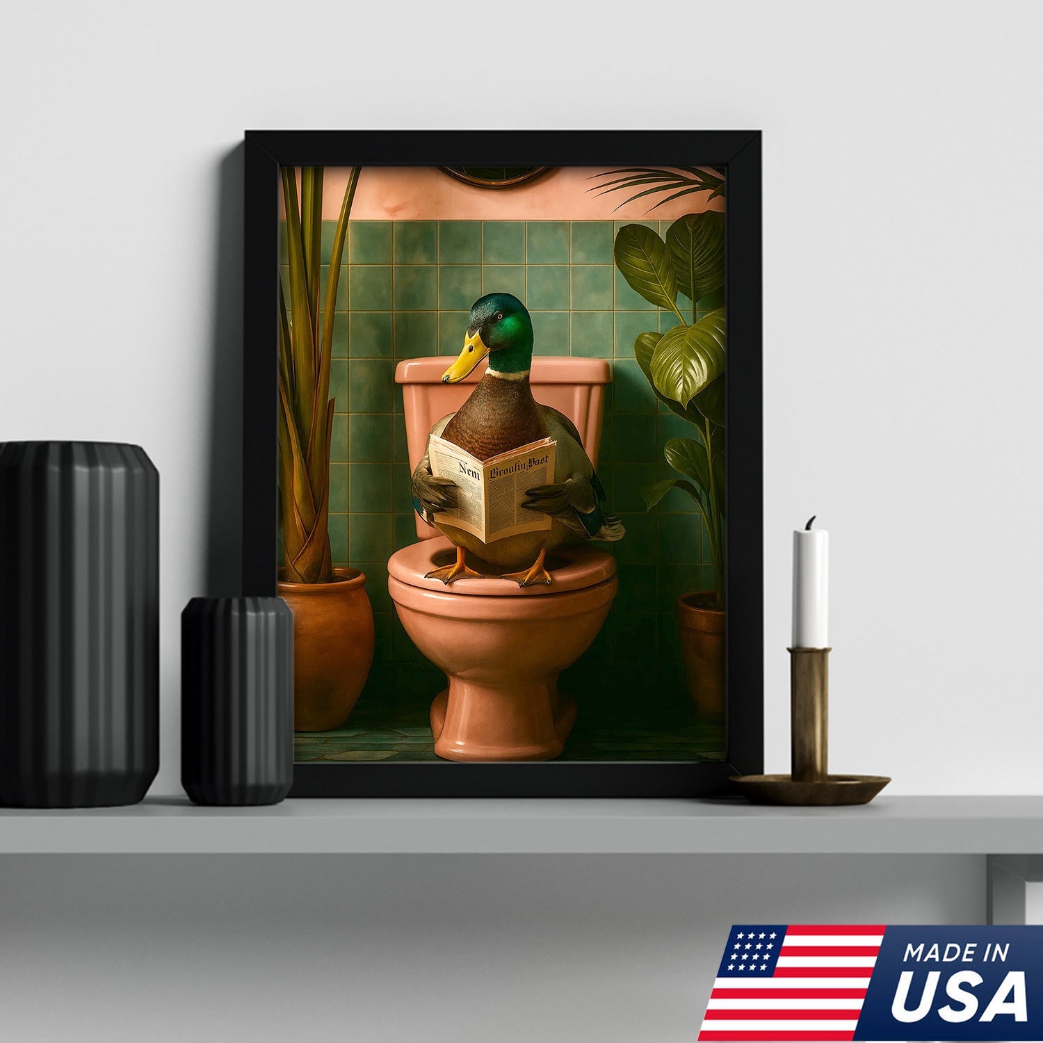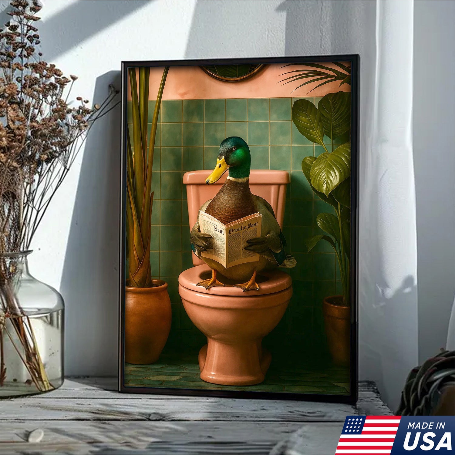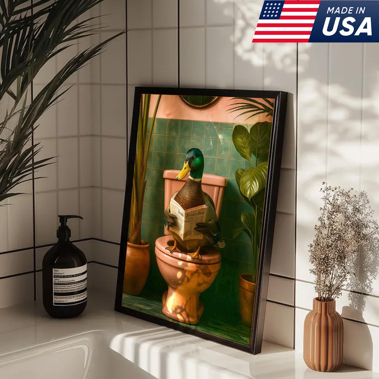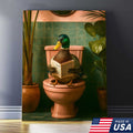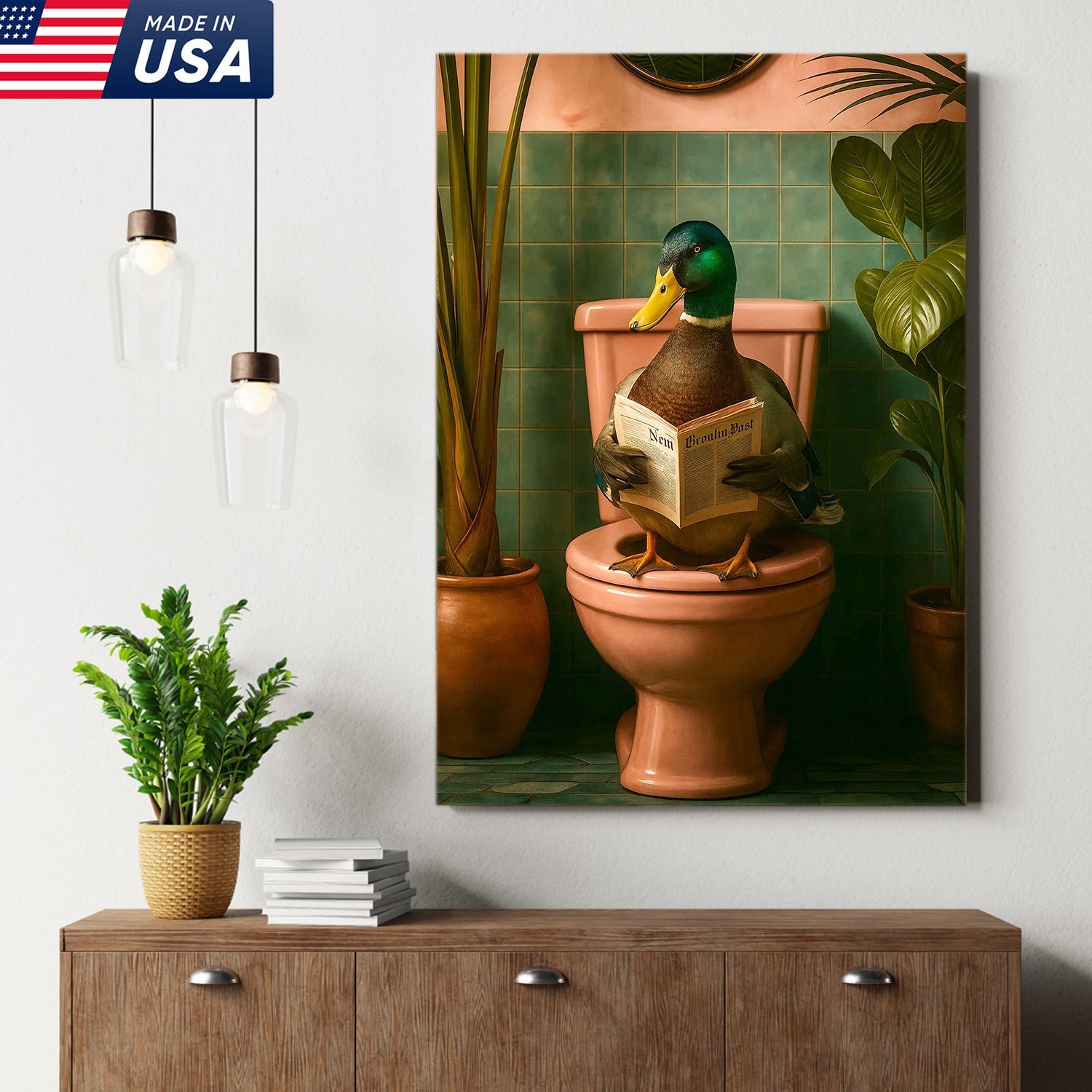 Whimsical Duck Bathroom Canvas Wall Art – Funny Rustic Lodge Decor – Mallard Reading Humor Print