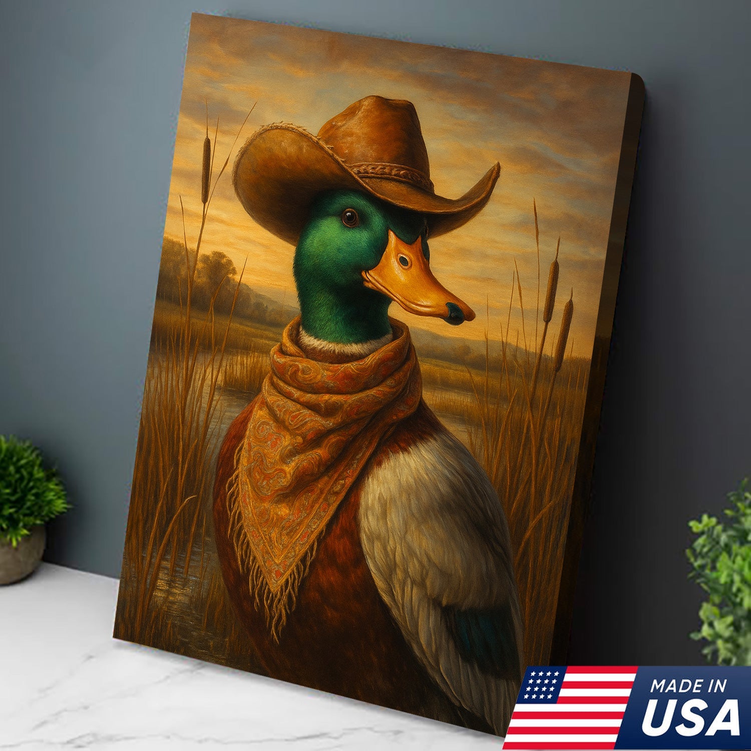 Wild Duck Cowboy Canvas – Funny Hunting Lodge Canvas Decor for Hunters