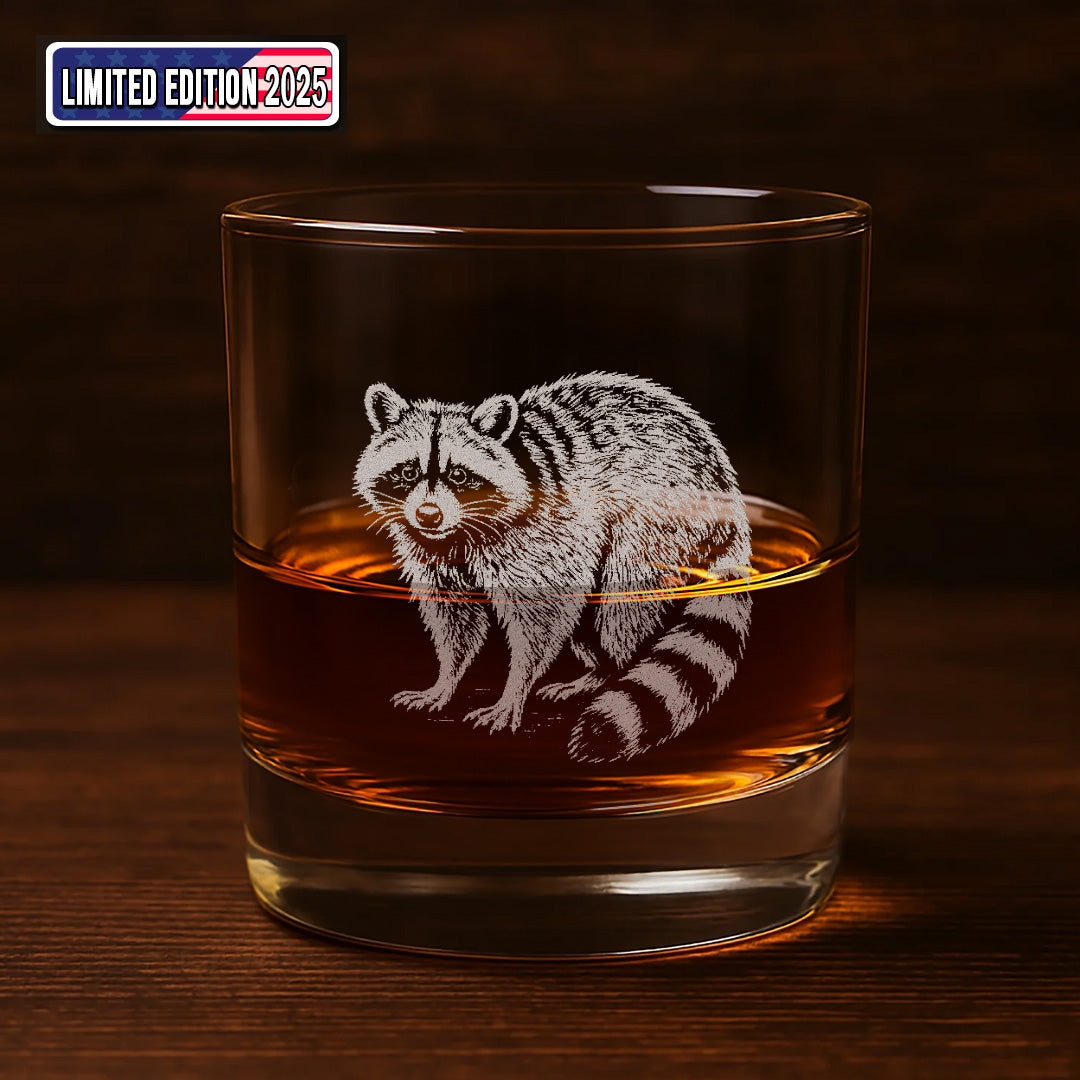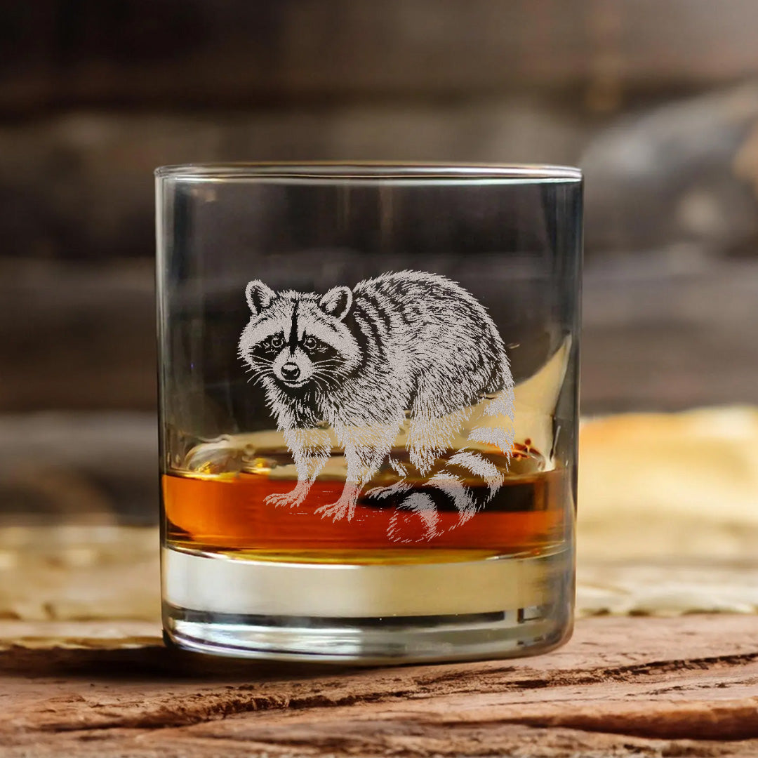 Wildlife Raccoon Engraved Whiskey Glass – Custom Rocks Glass Gift for Hunters & Wildlife Lovers