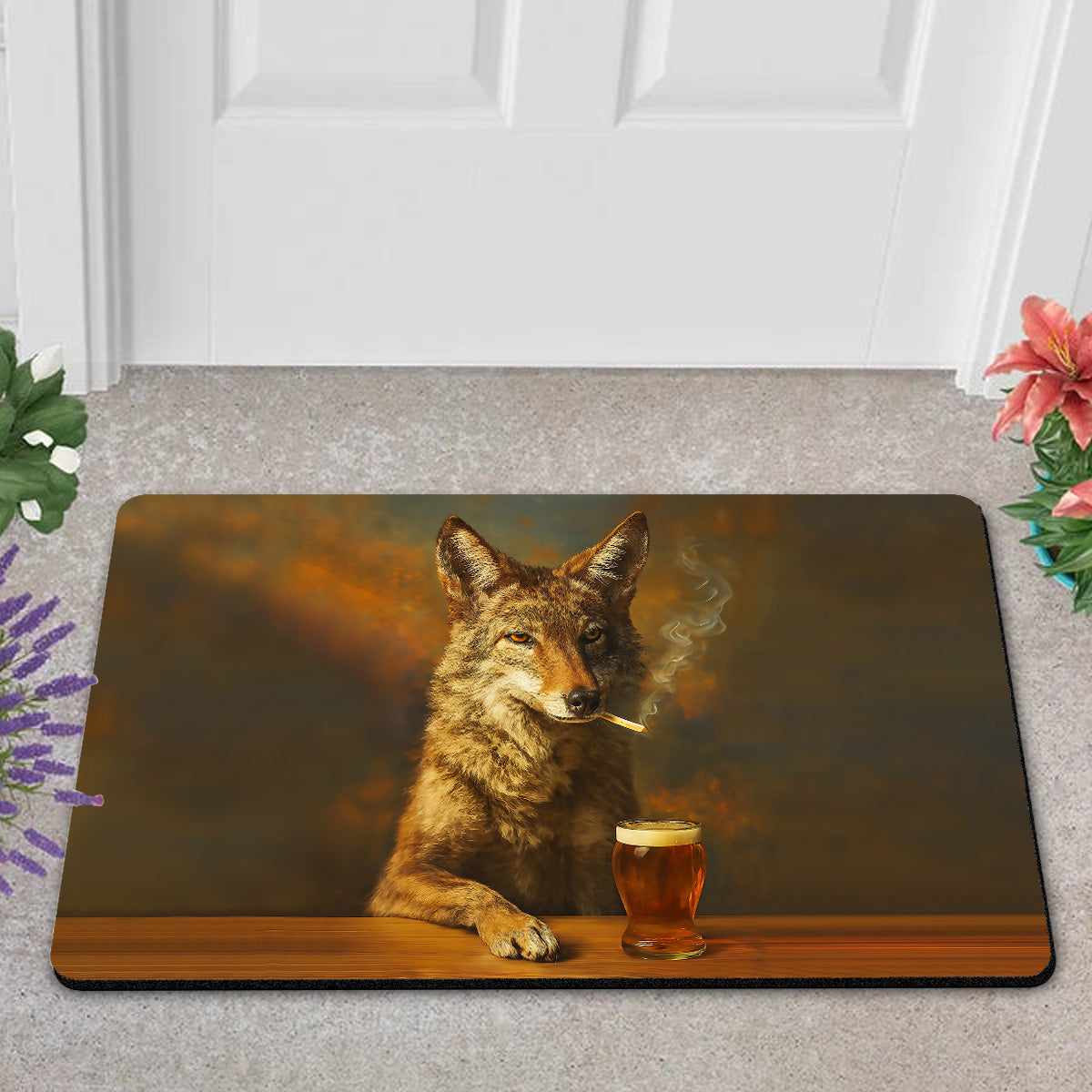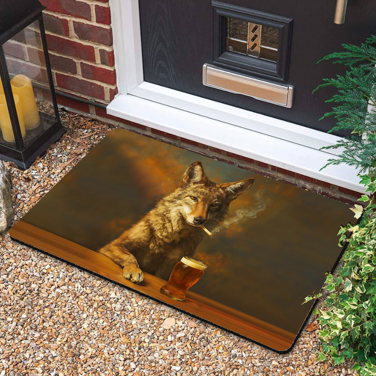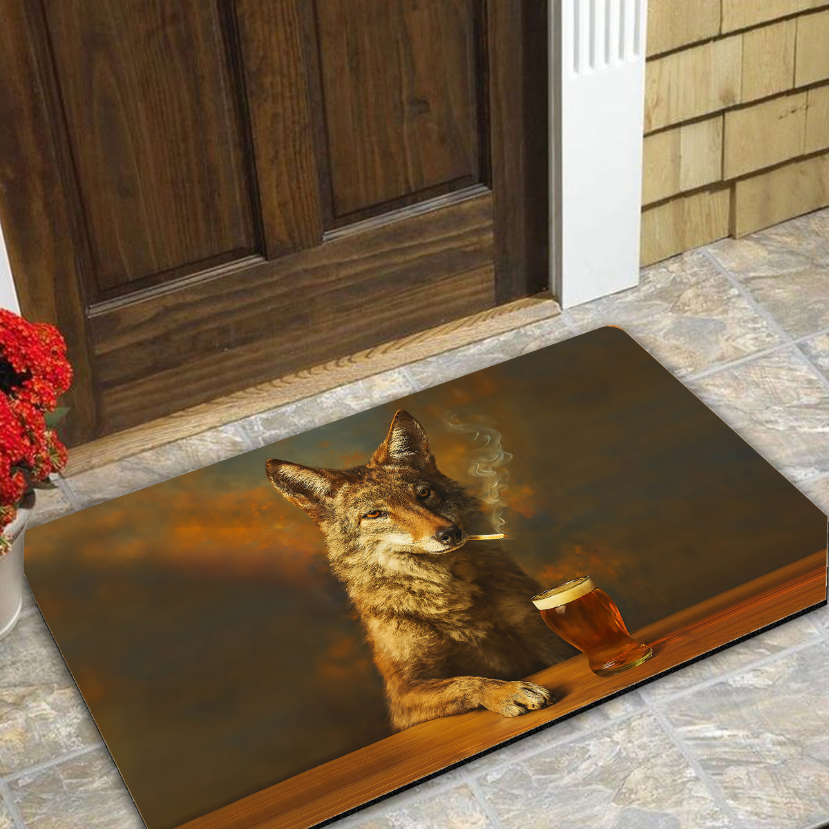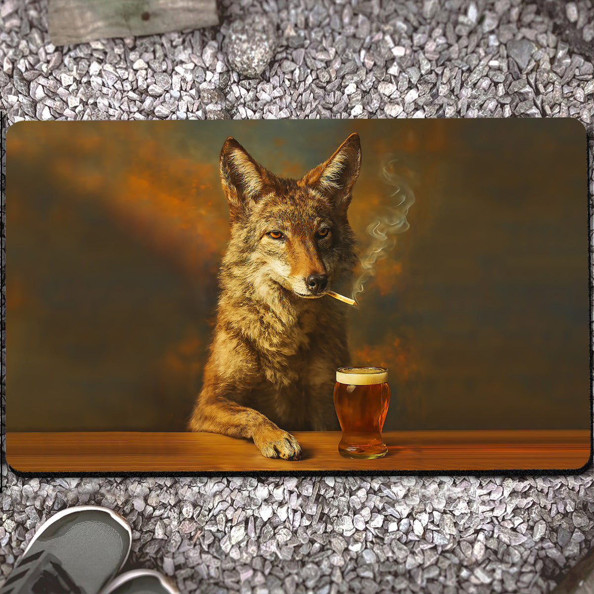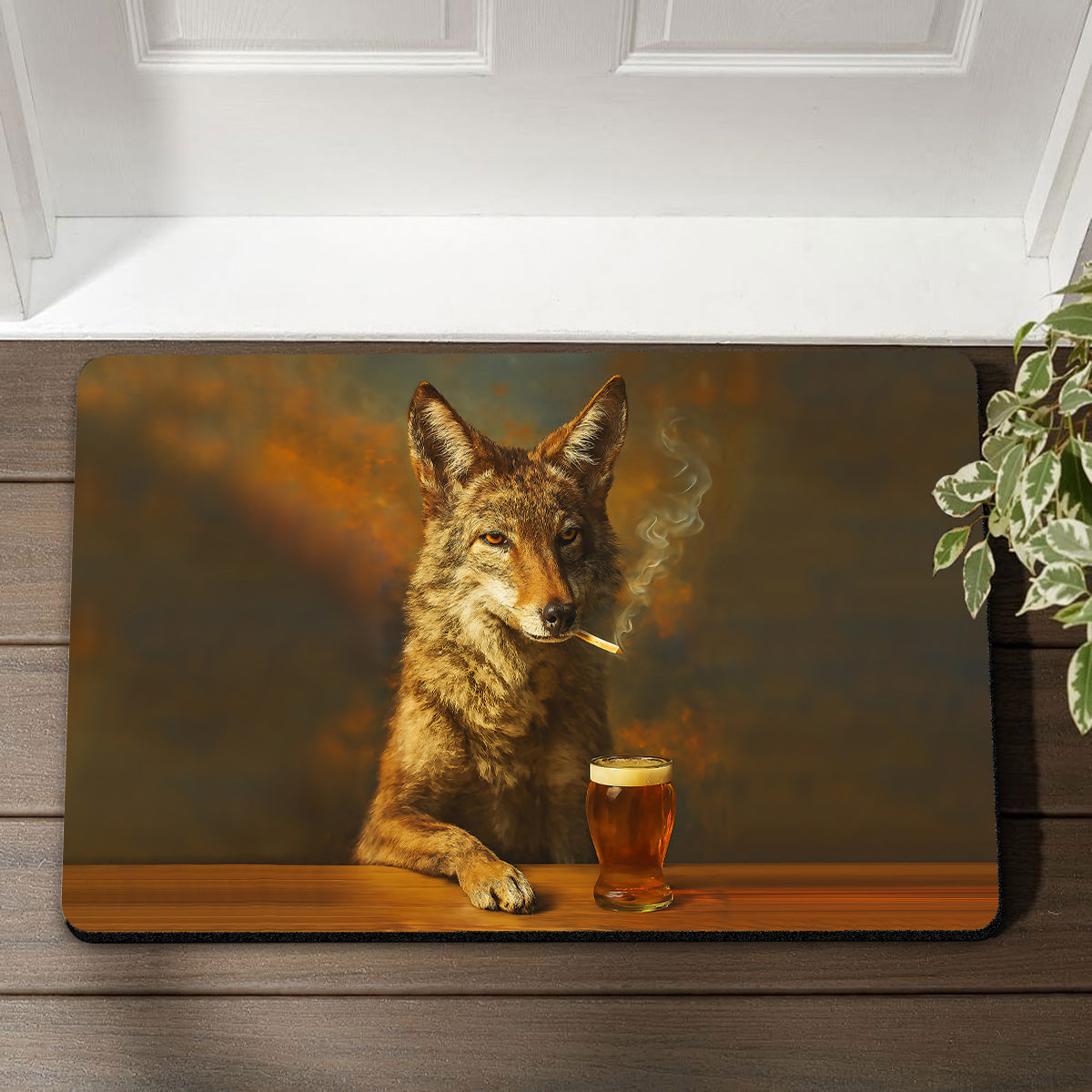 Wolf Smoking & Bar Glassware Doormat – Funny Animal Floor Mat for Hunters, Bars & Man Cave Decor