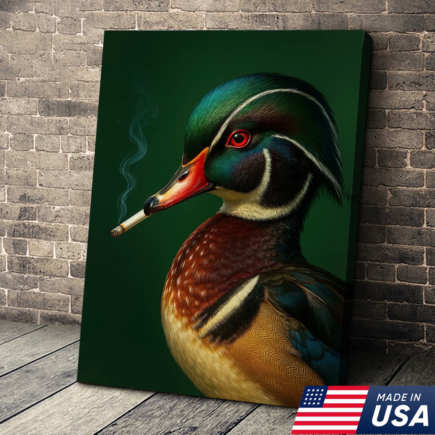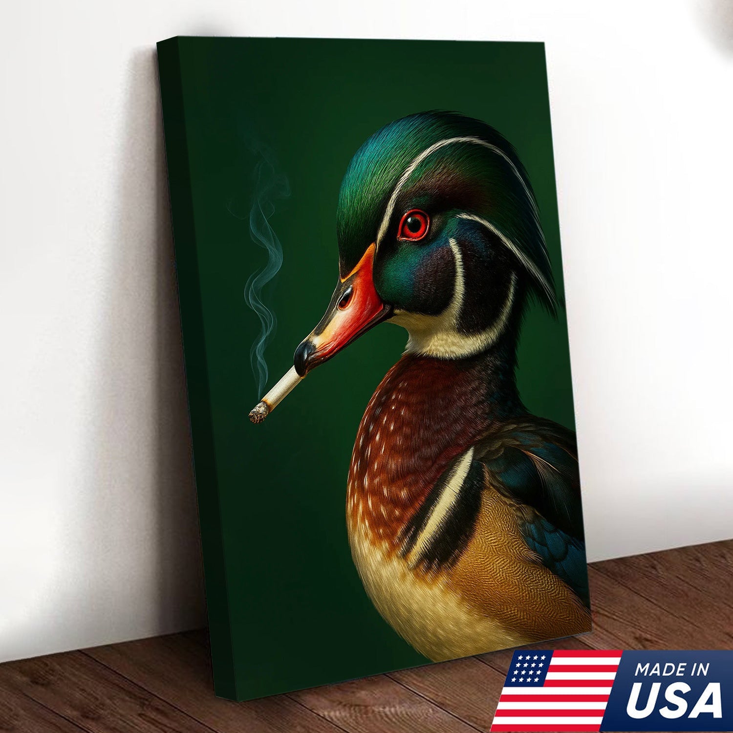 Wood Duck Wall Art Canvas - Vibrant Wildlife Cabin Decor - Unique Hunting Lodge Artwork