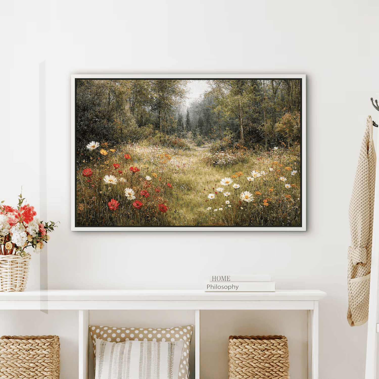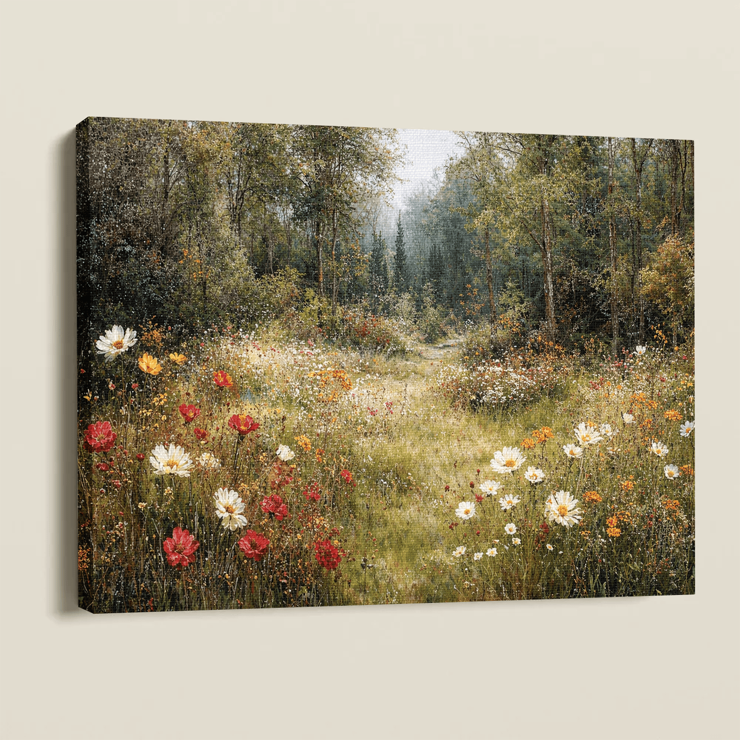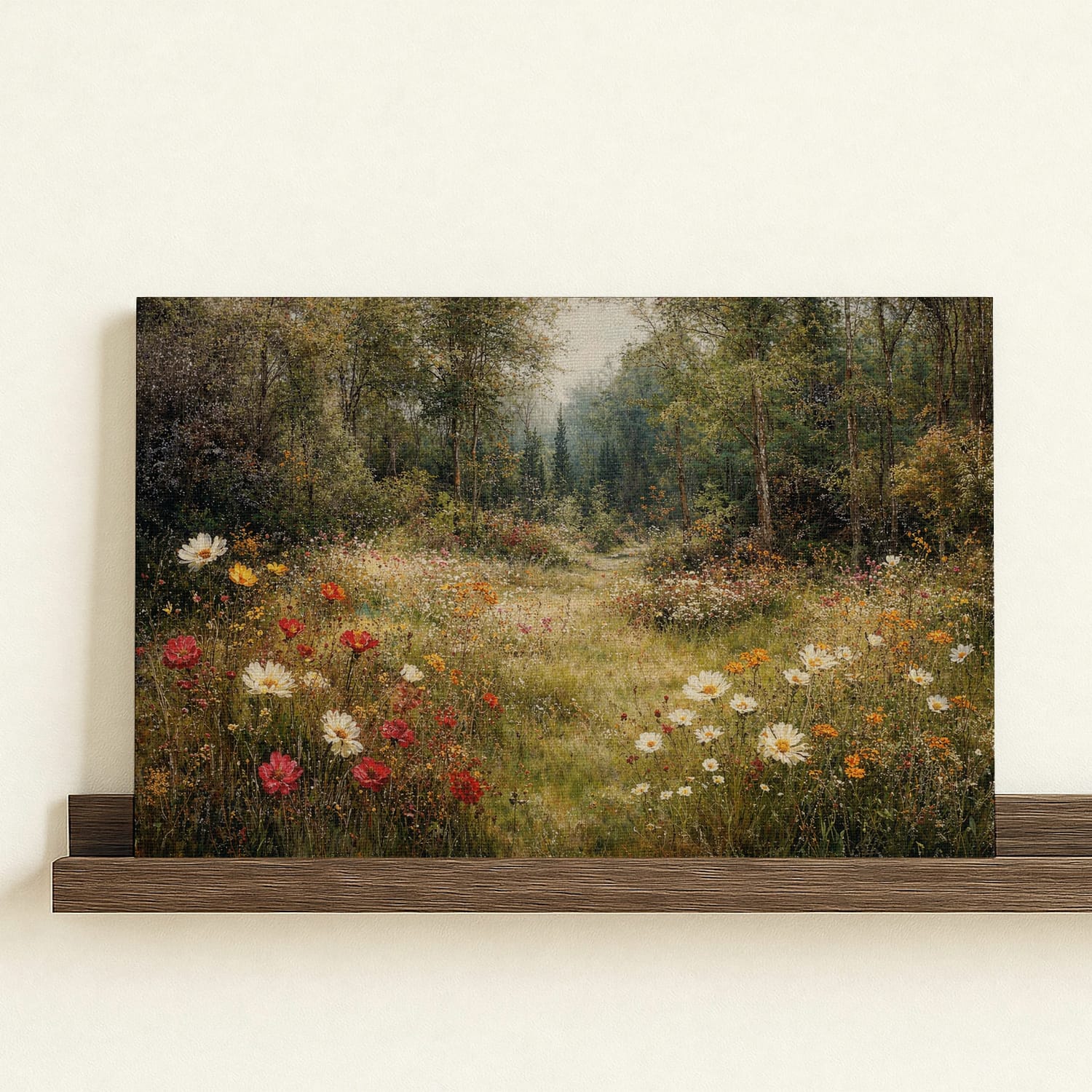 Woodland Floral Path Framed Canvas β Quiet Forest Walk